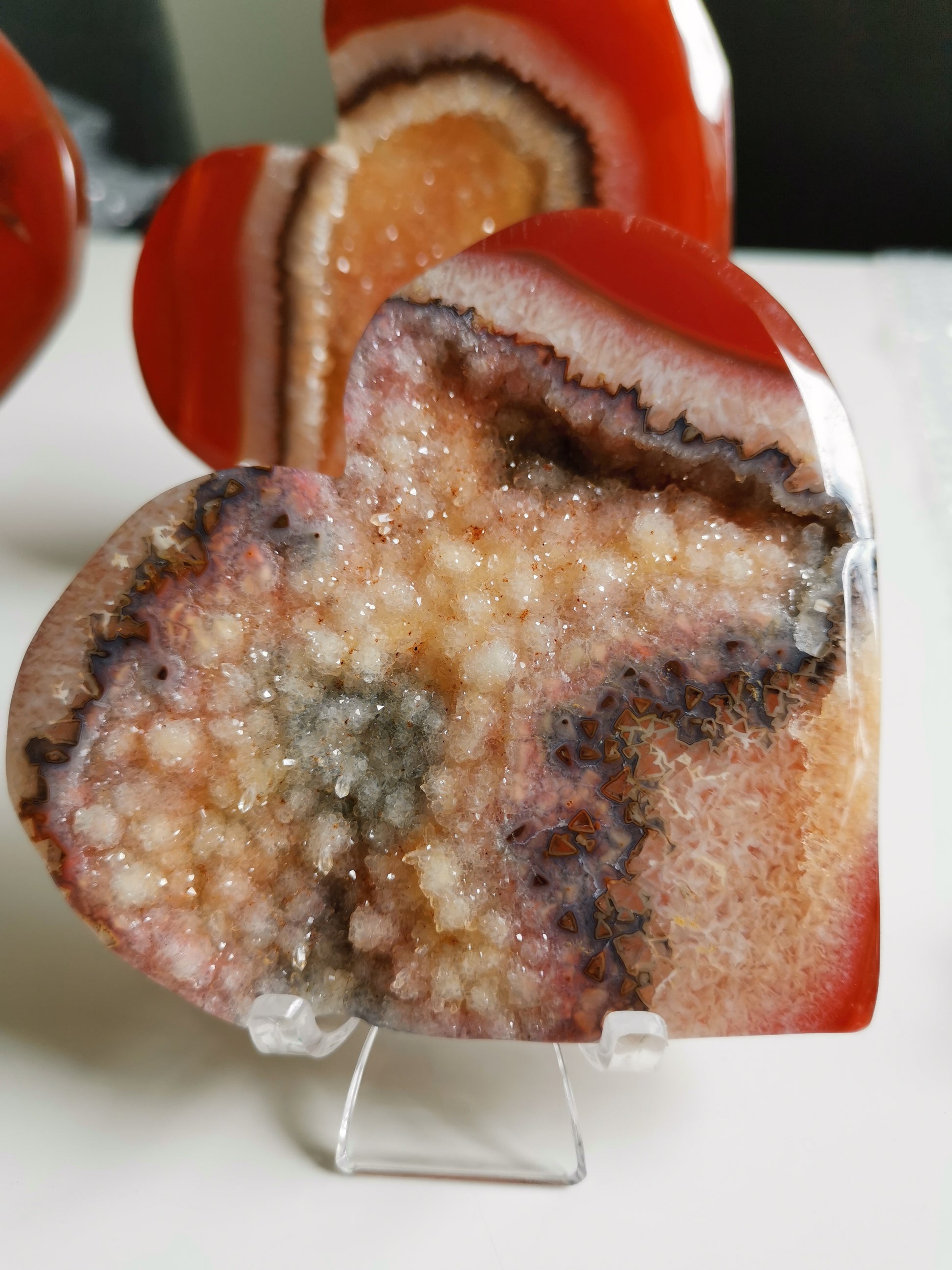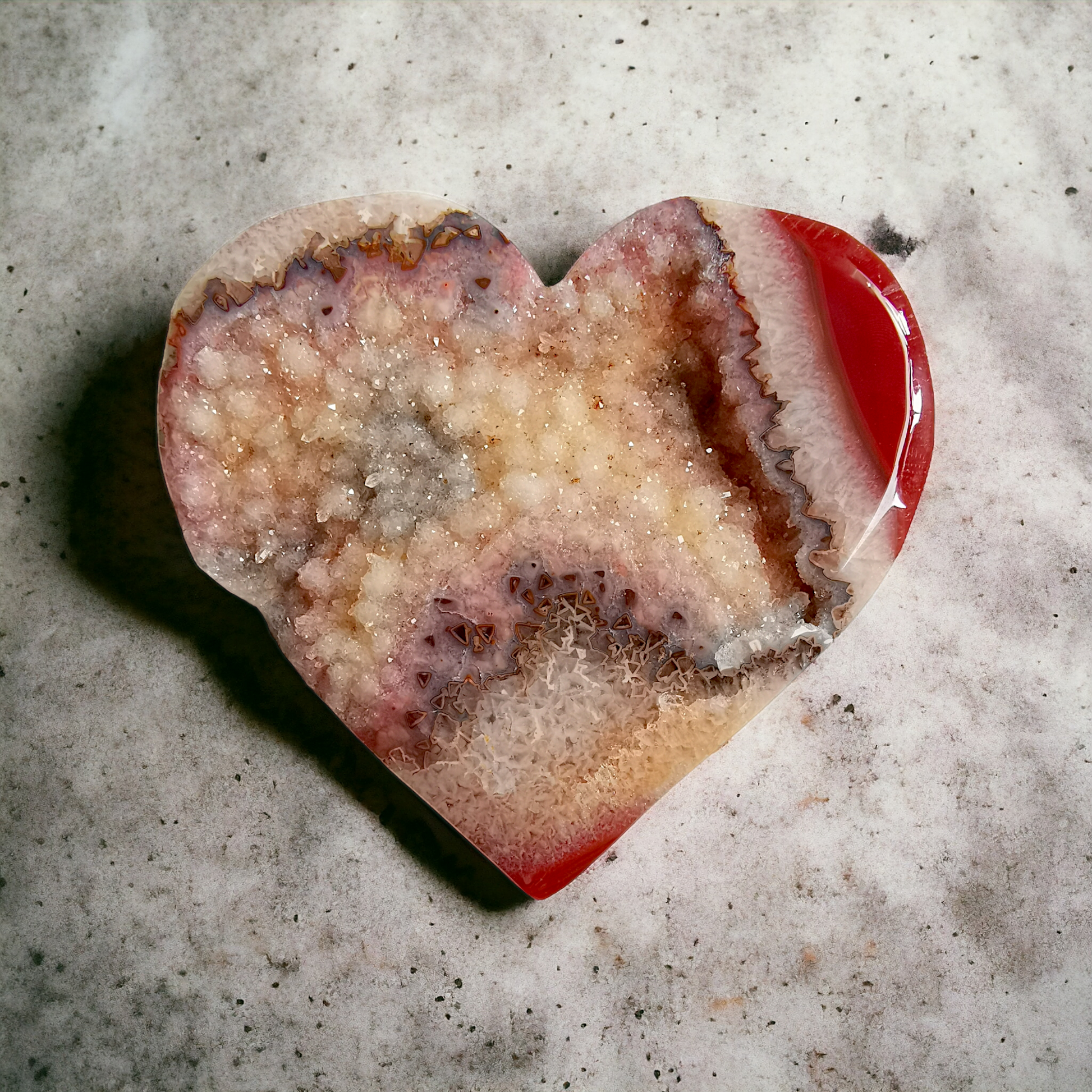 Gulligt hjärta i Karneol med kvarts & druzy.