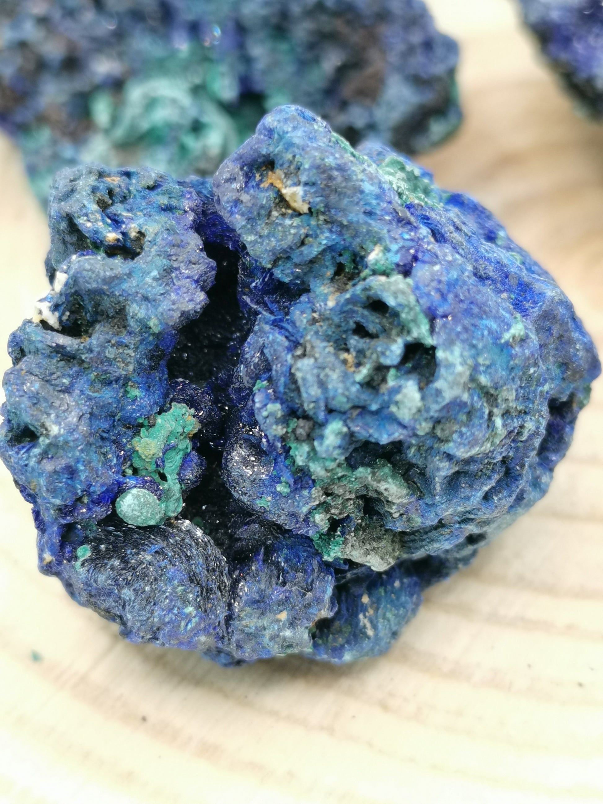 Råa bitar av Azurit med Malakit.
