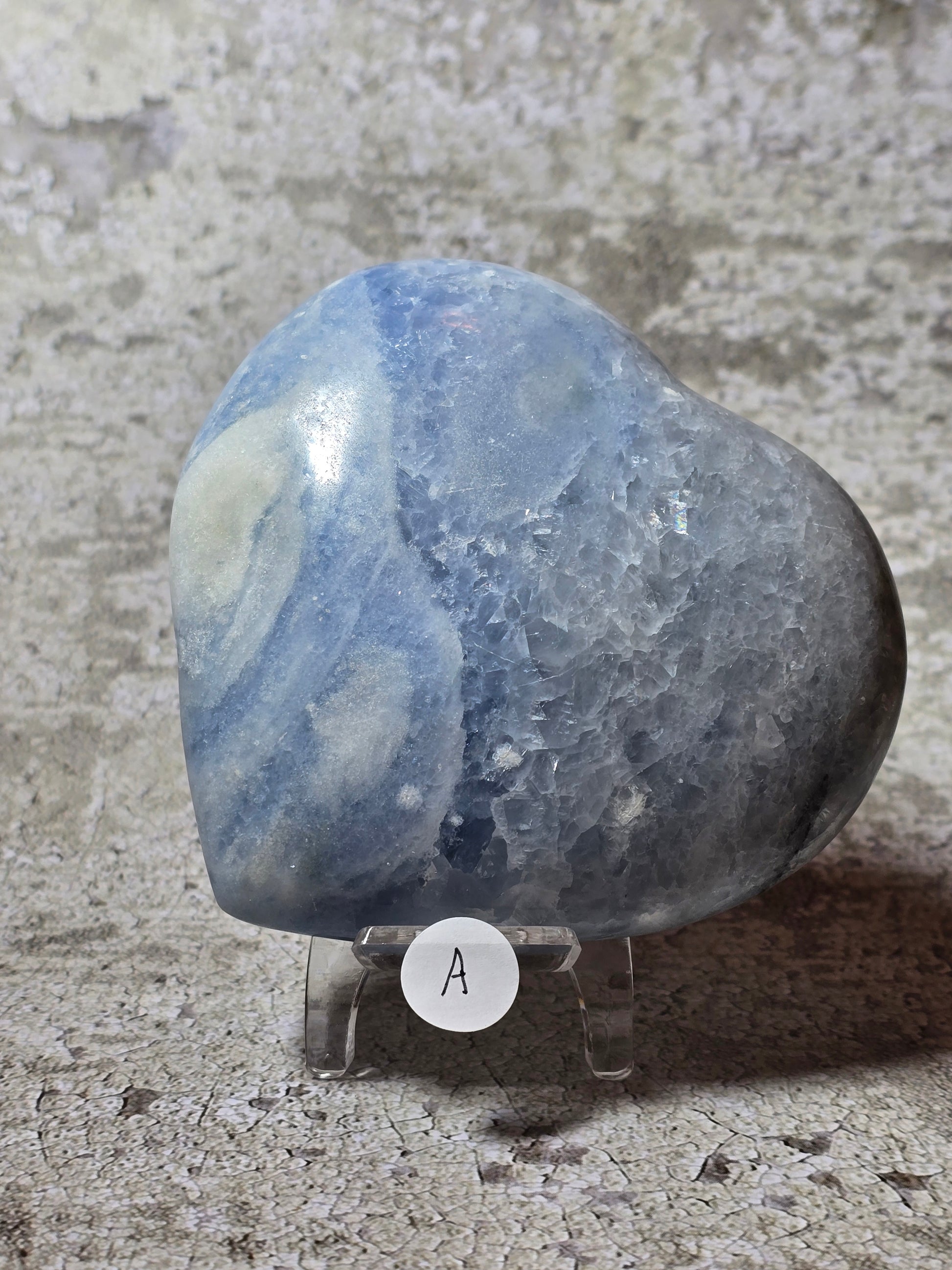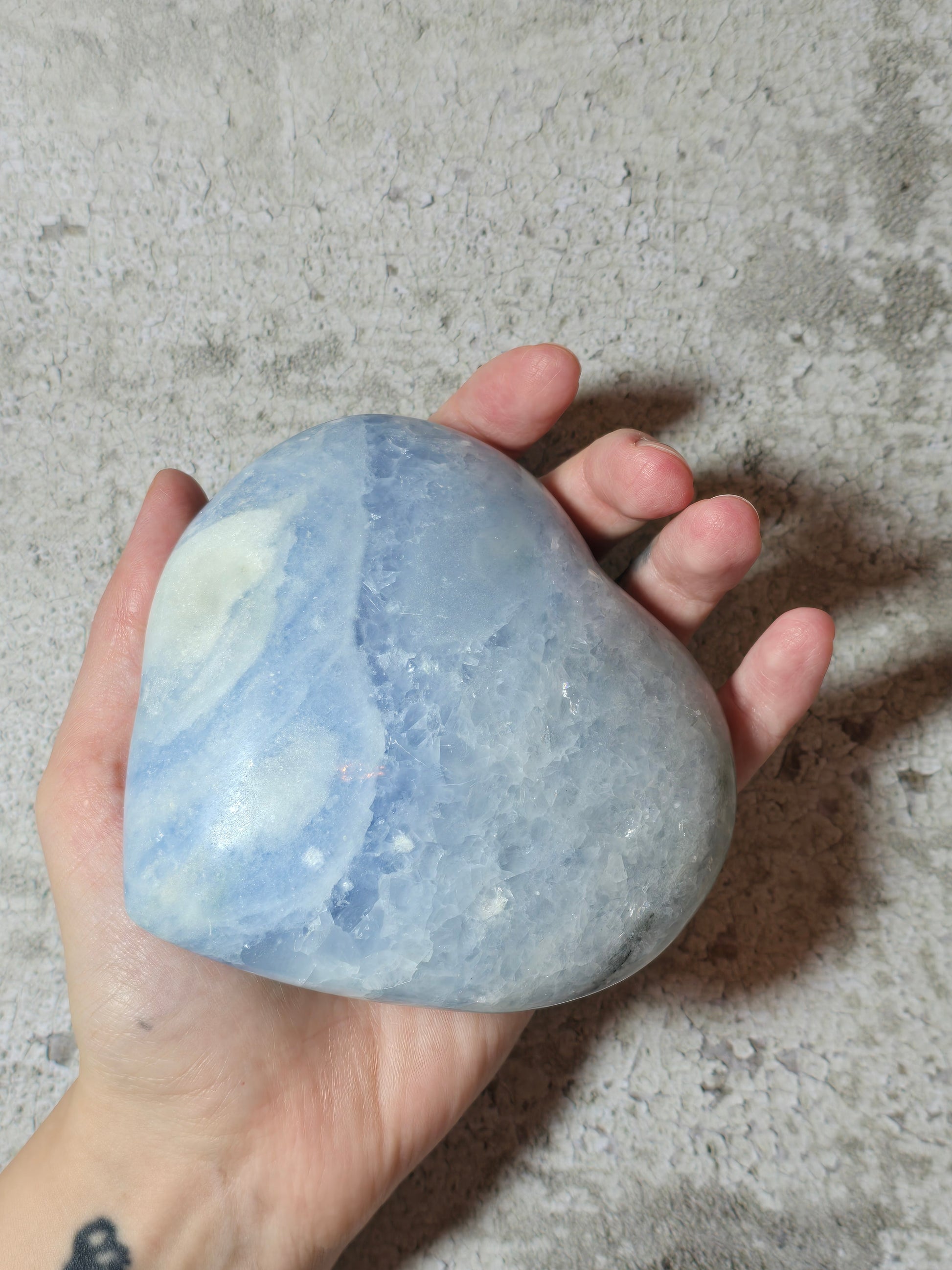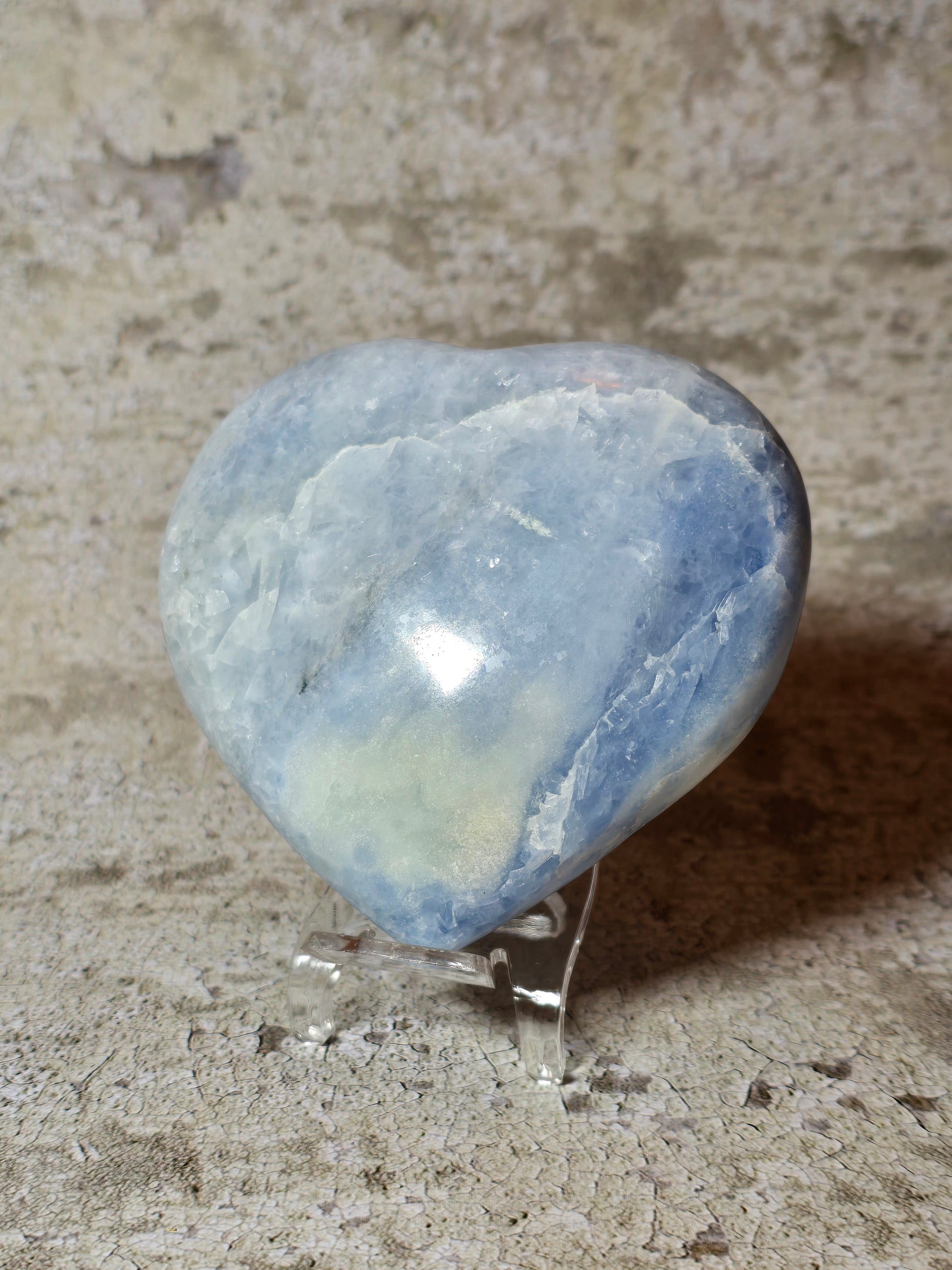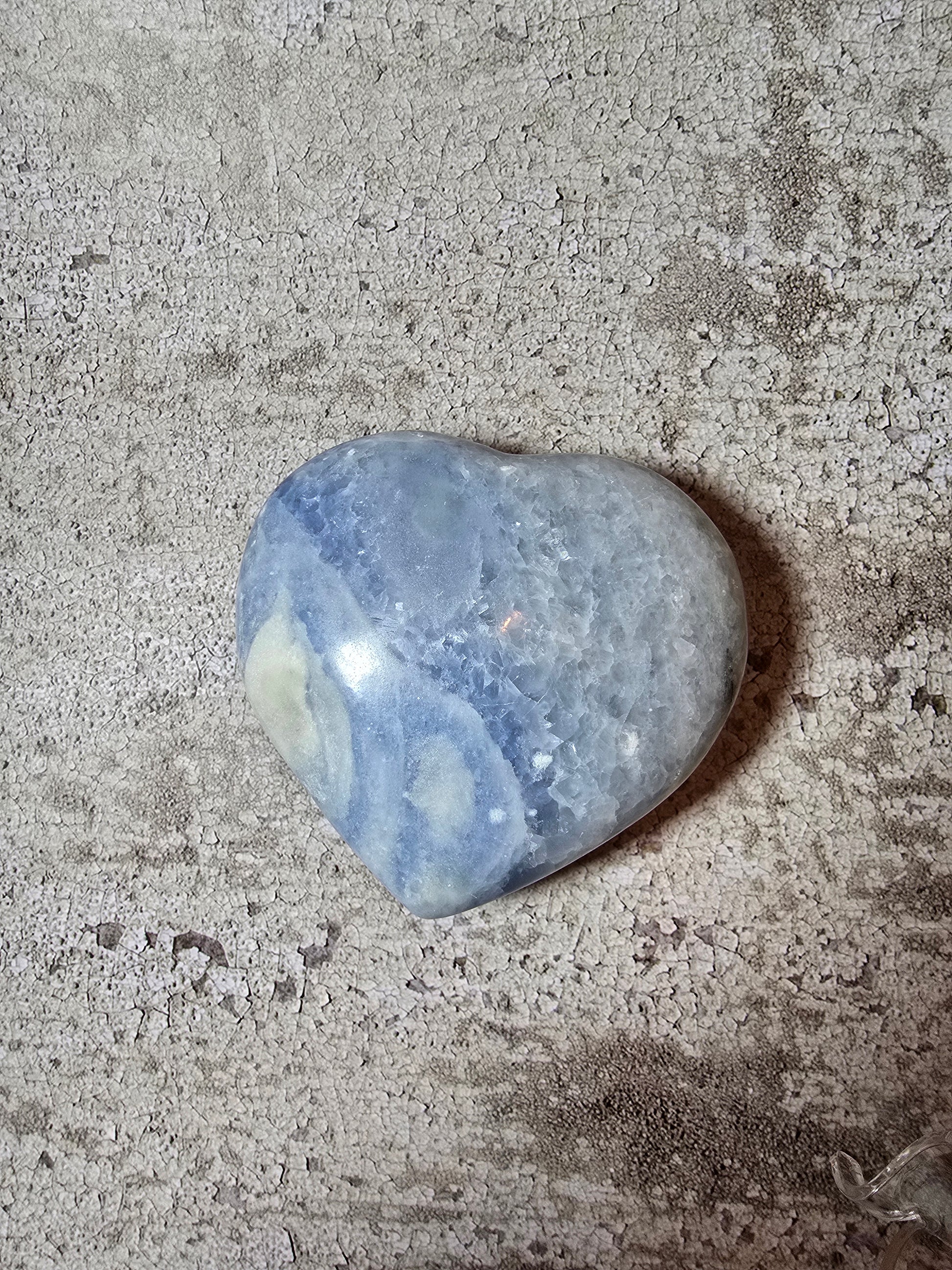 Vackert hjärta i Celestit, härlig tyngd och mjuk blå färg.
