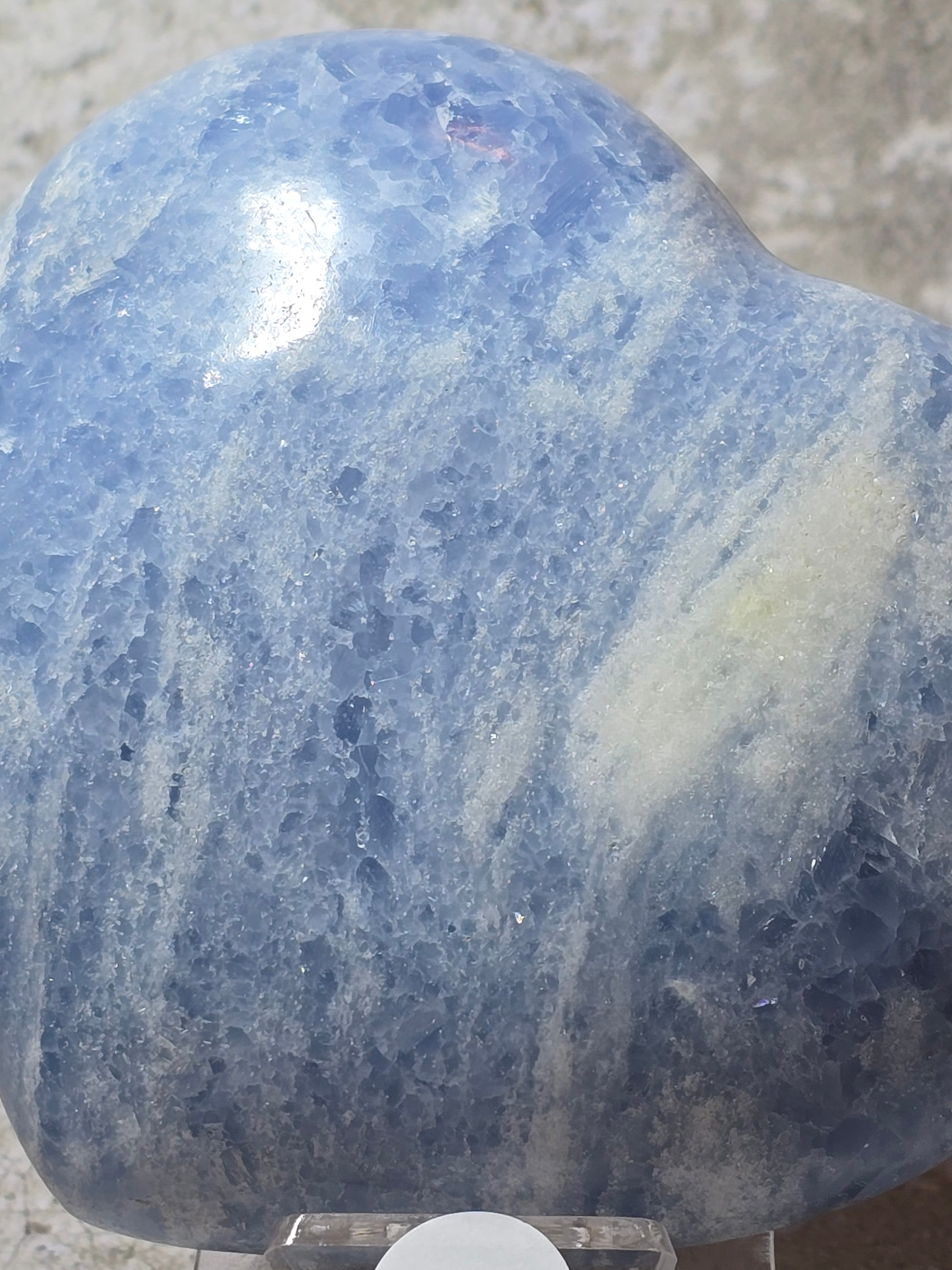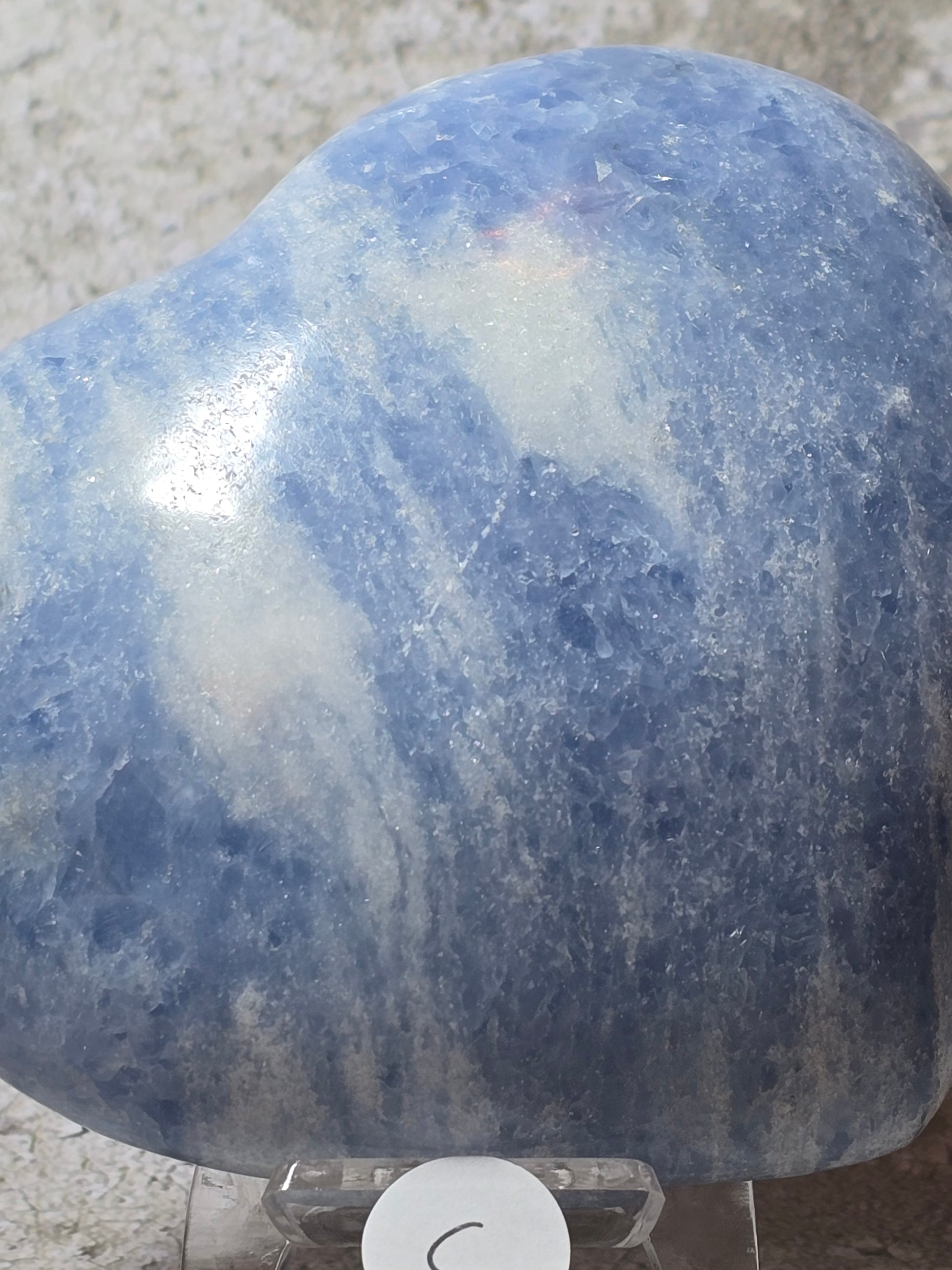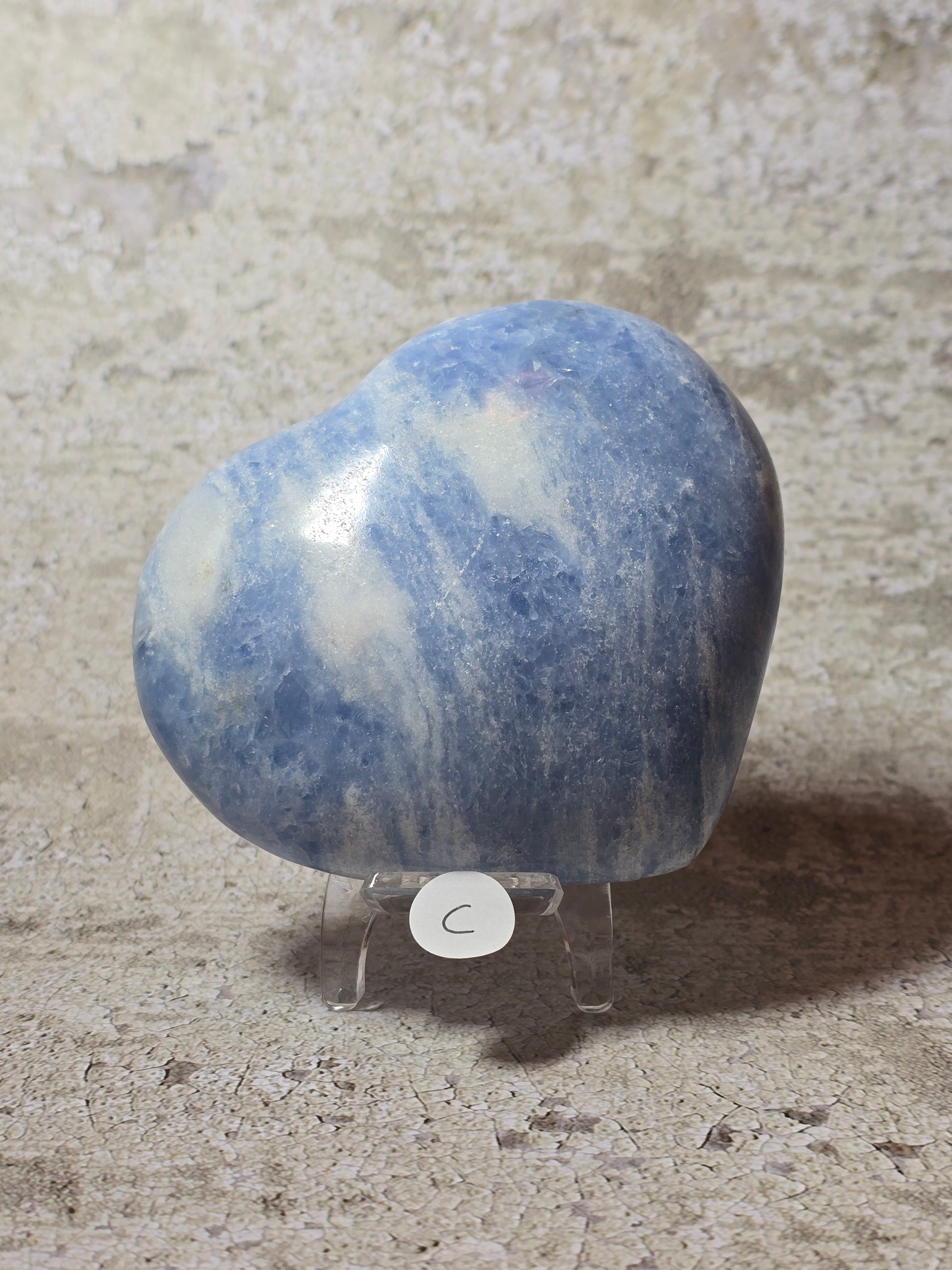Vackert hjärta i Celestit, härlig tyngd och mjuk blå färg.