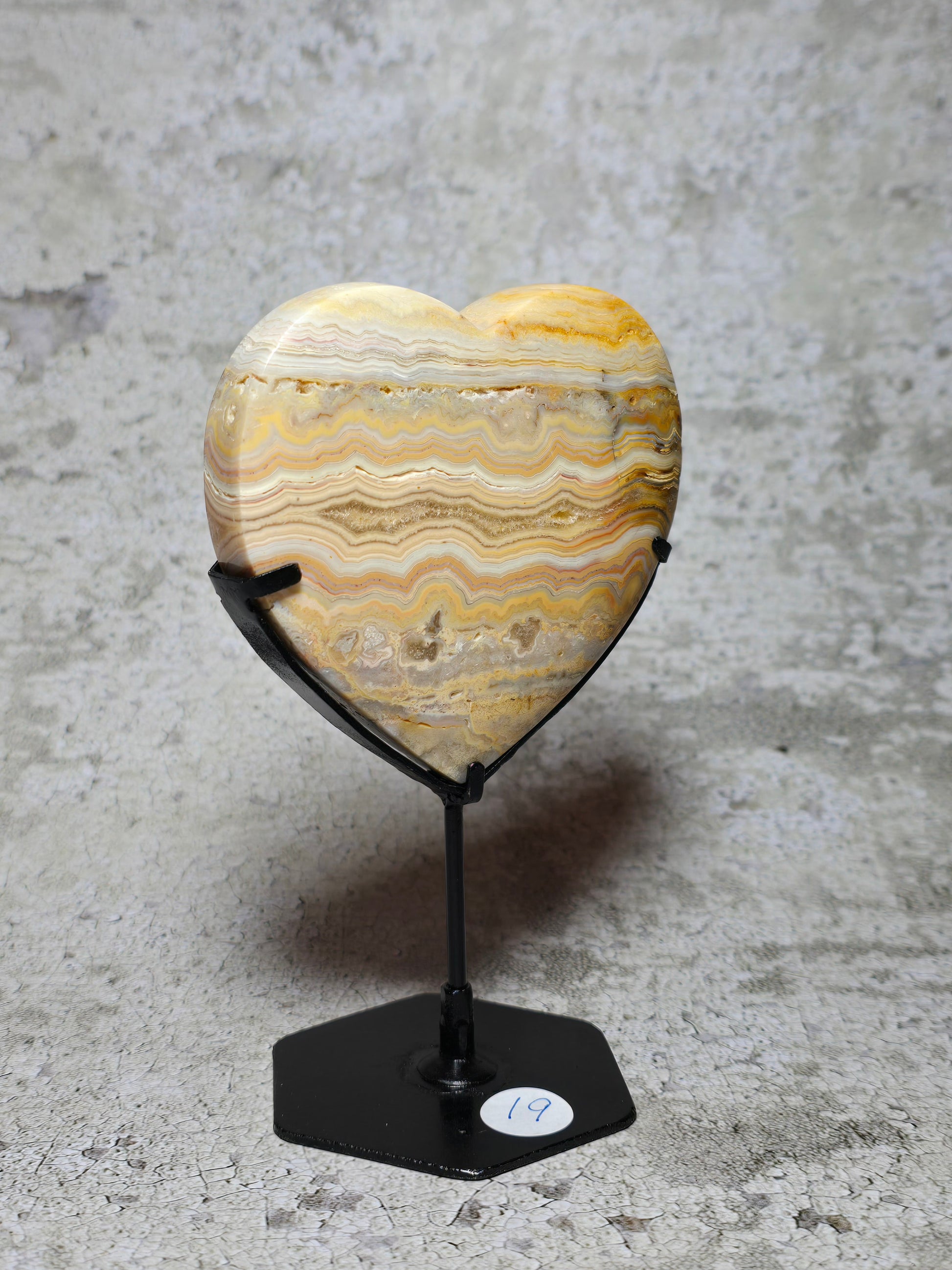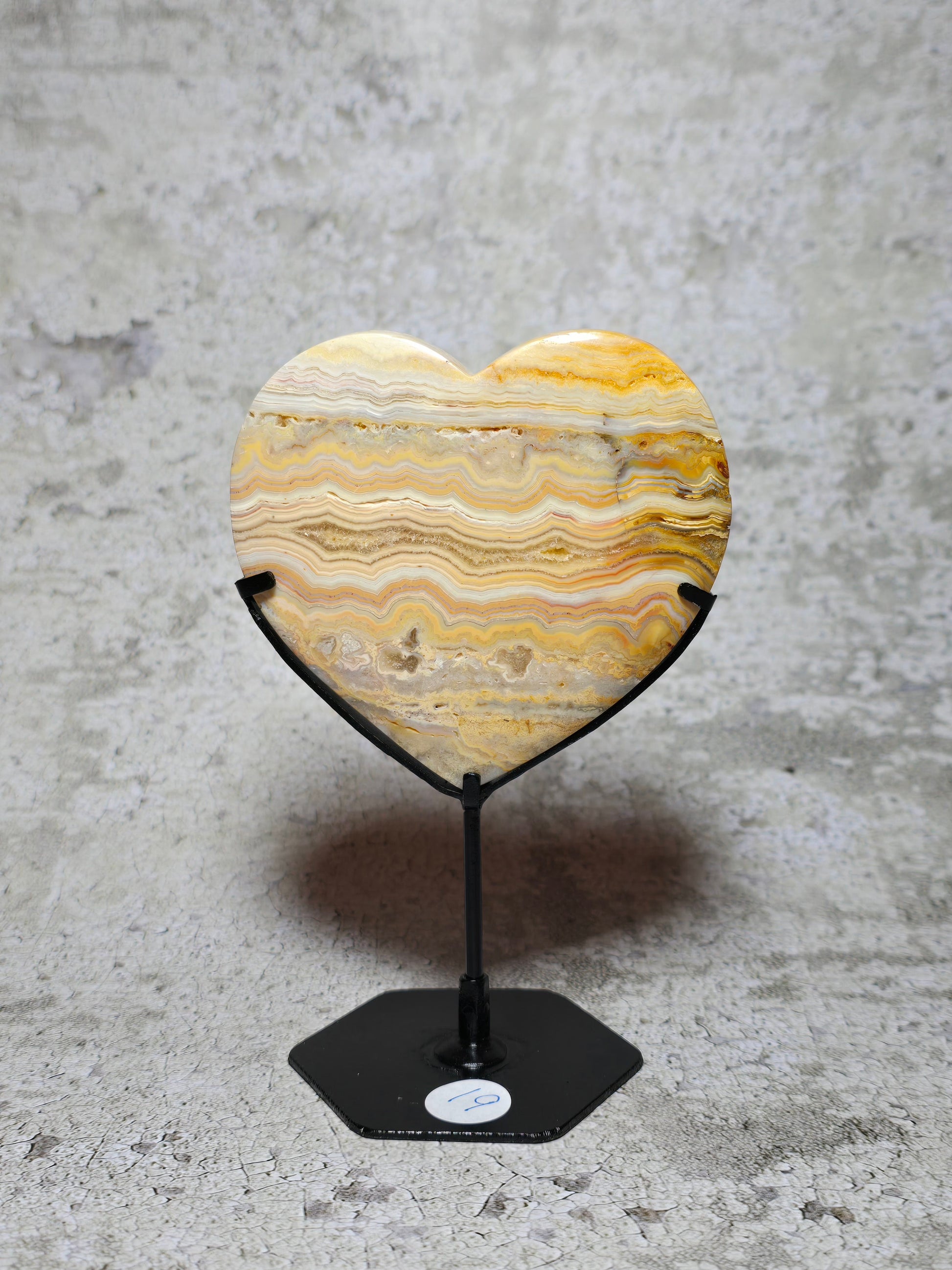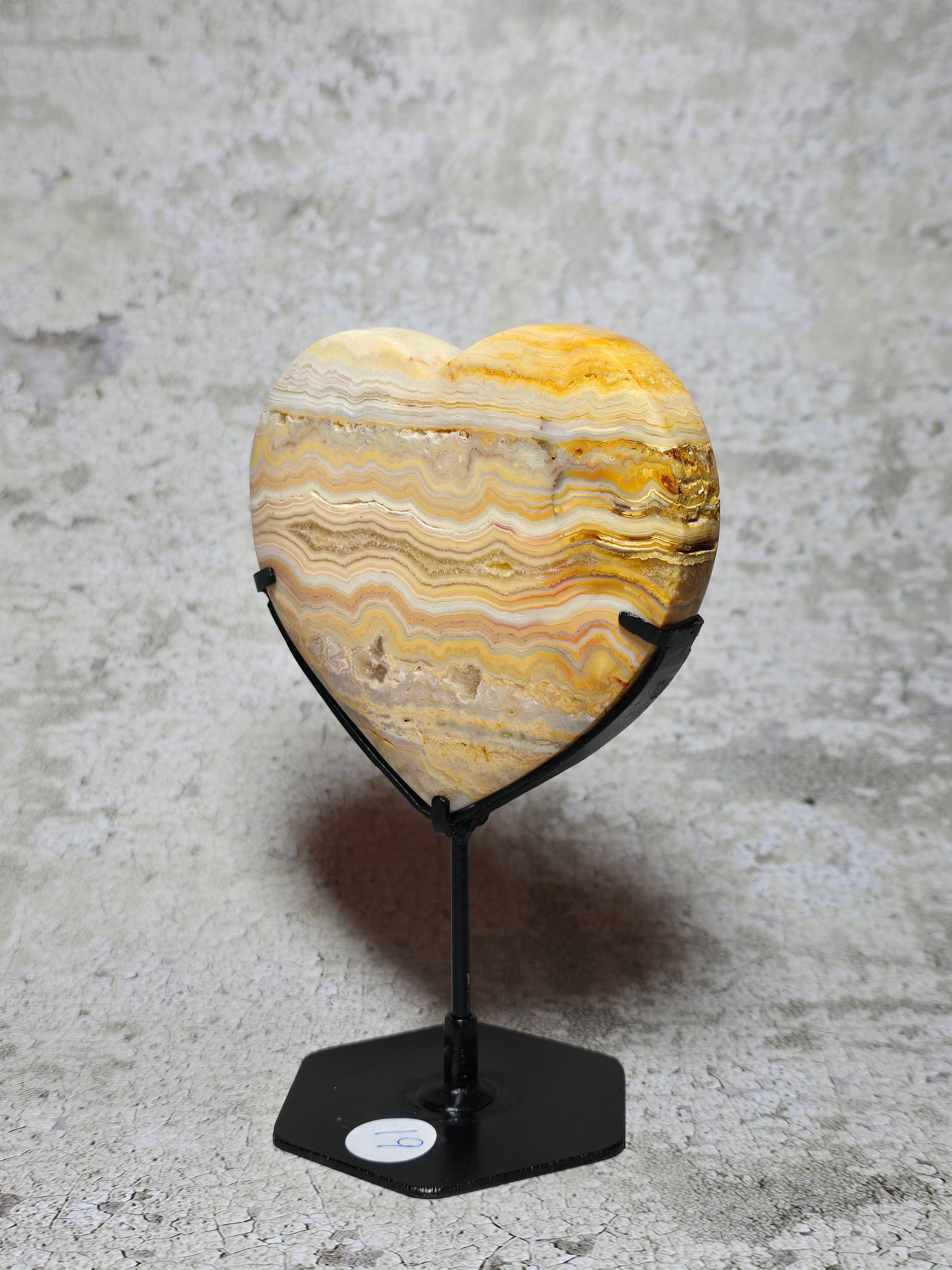 Letar du efter nått vackert att pryda ditt sidobord eller fönster med? Vackert gult crazy lace agat hjärta med massa druzy & härligt mönster.