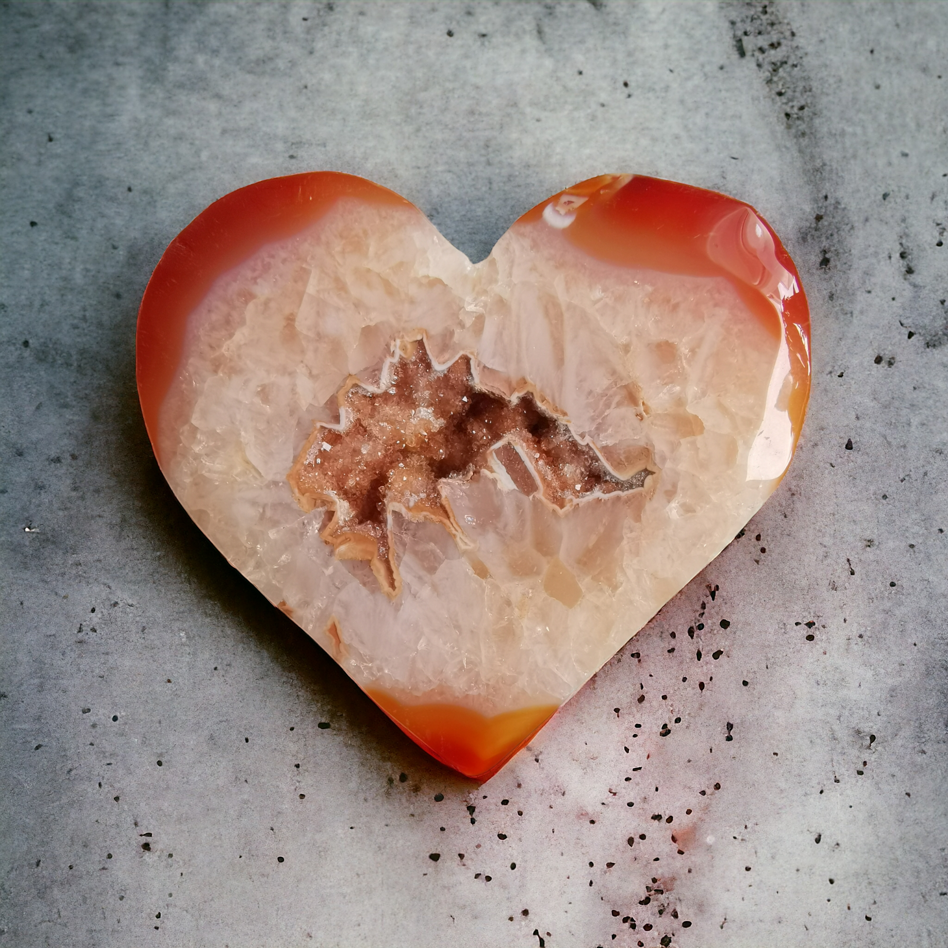 Gulligt hjärta i Karneol med kvarts & druzy.