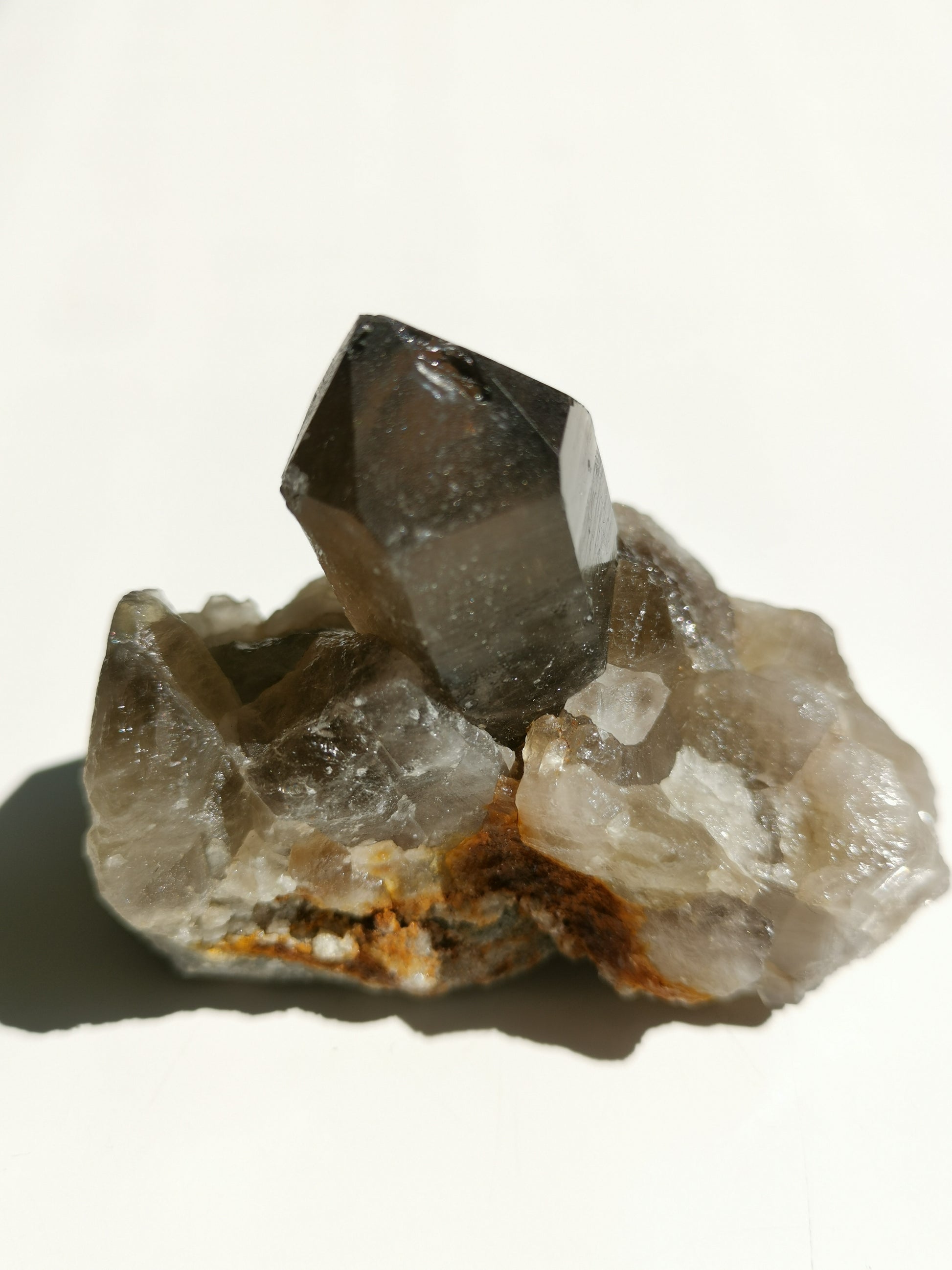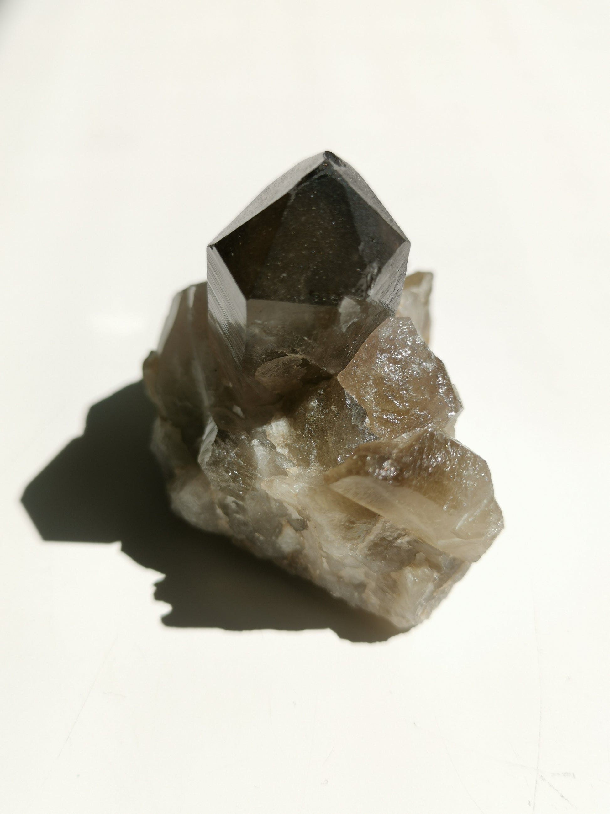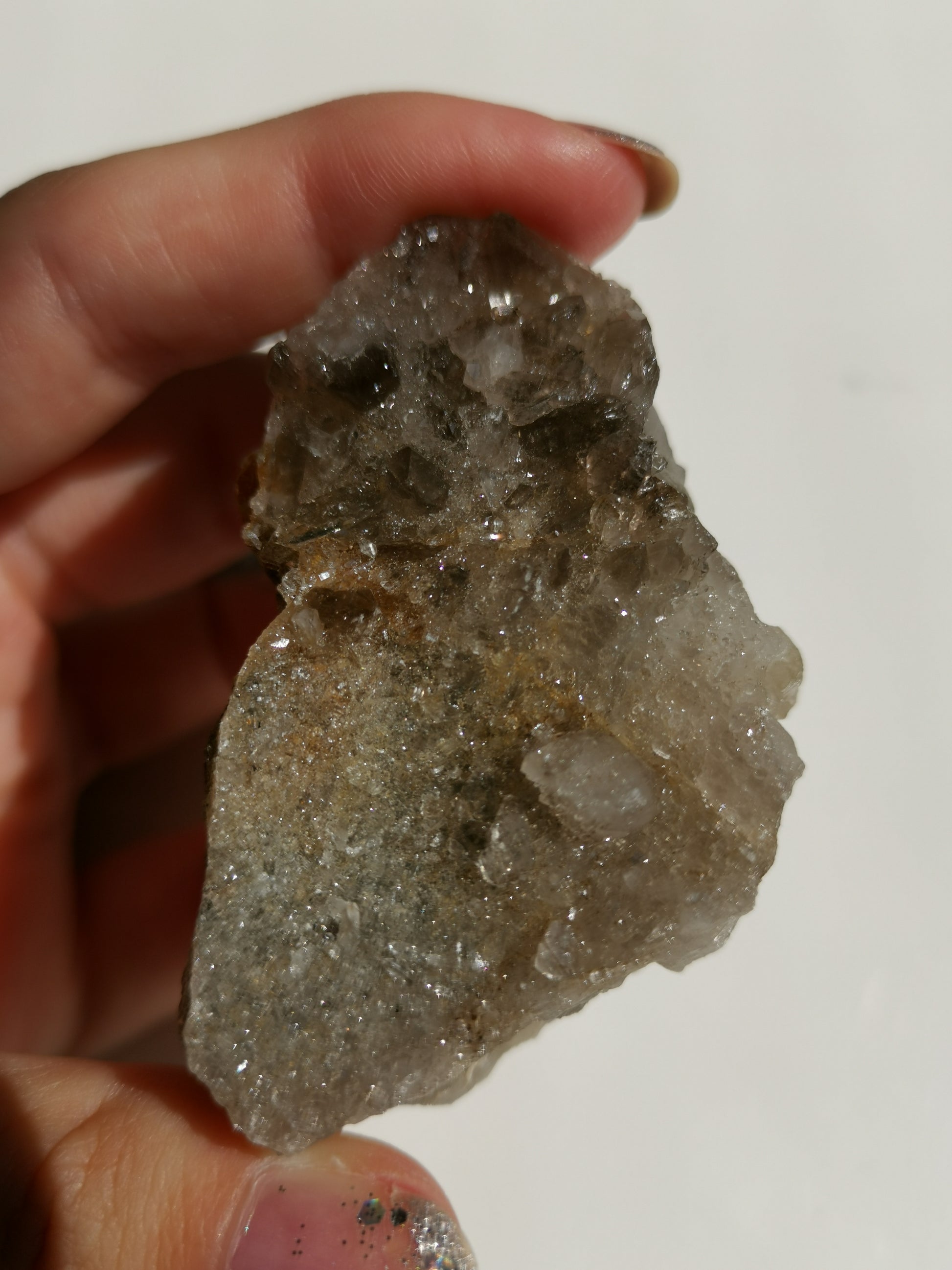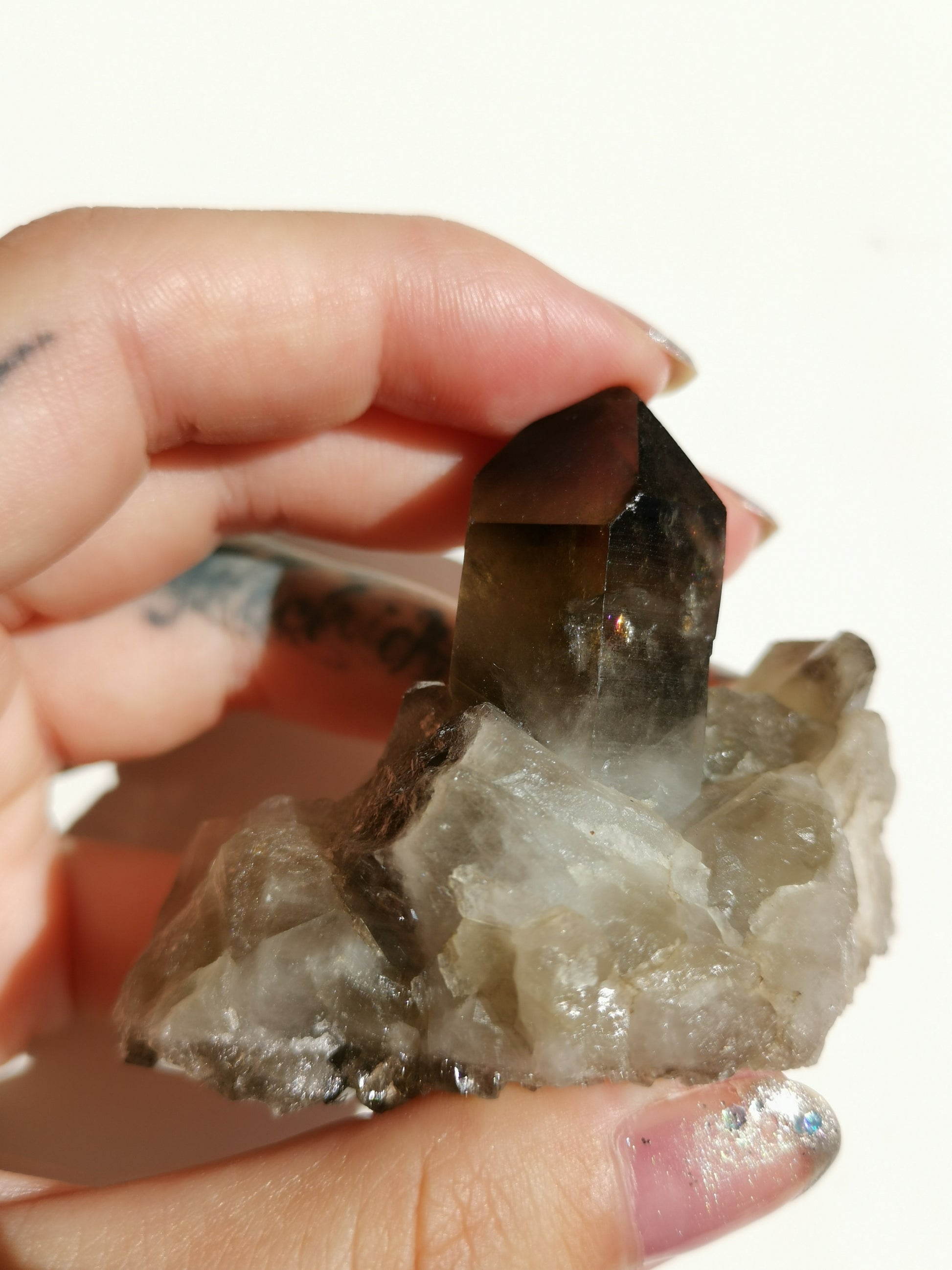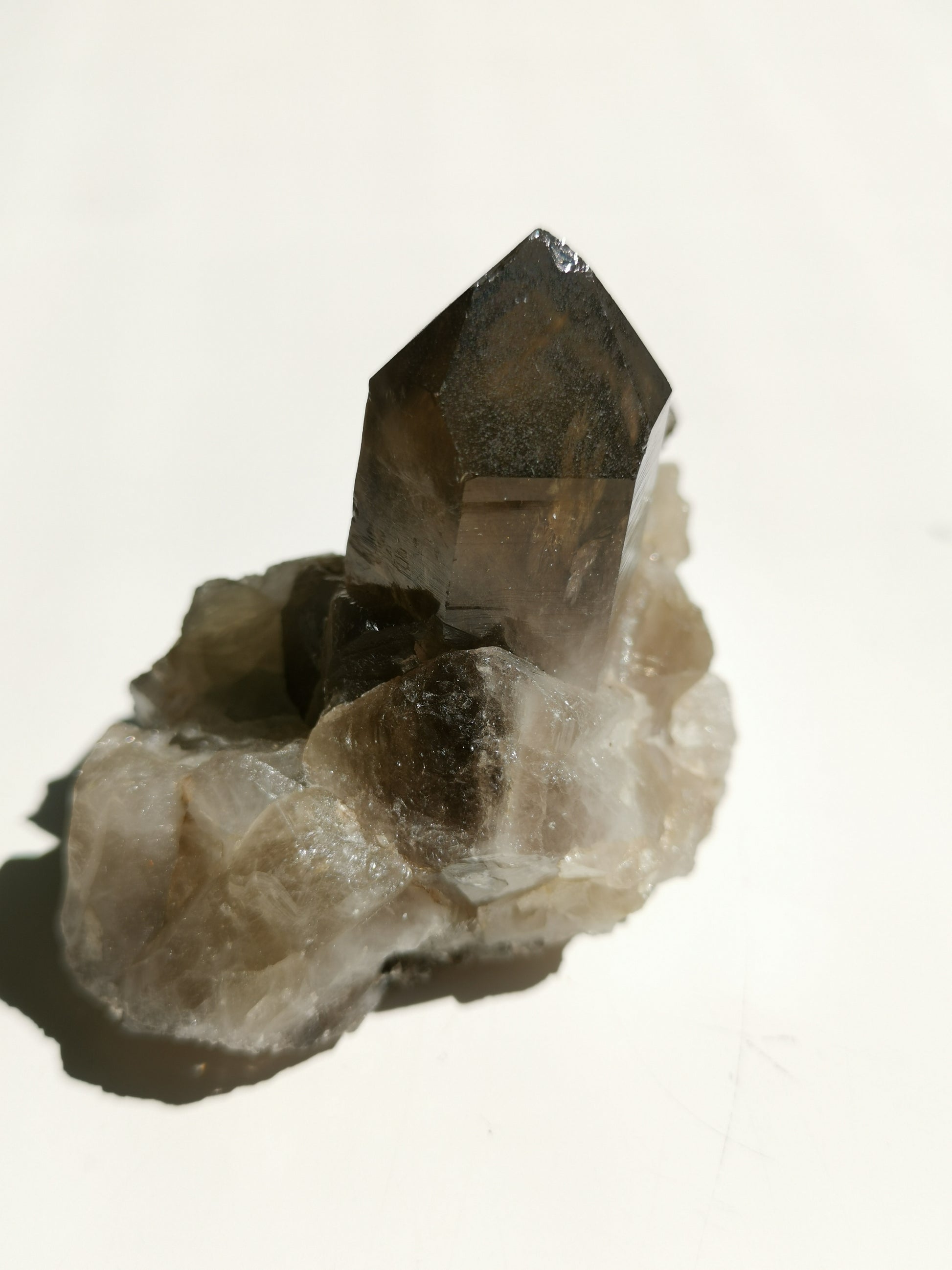 Naturliga små kluster, klungor av spetsar i rökkvarts.