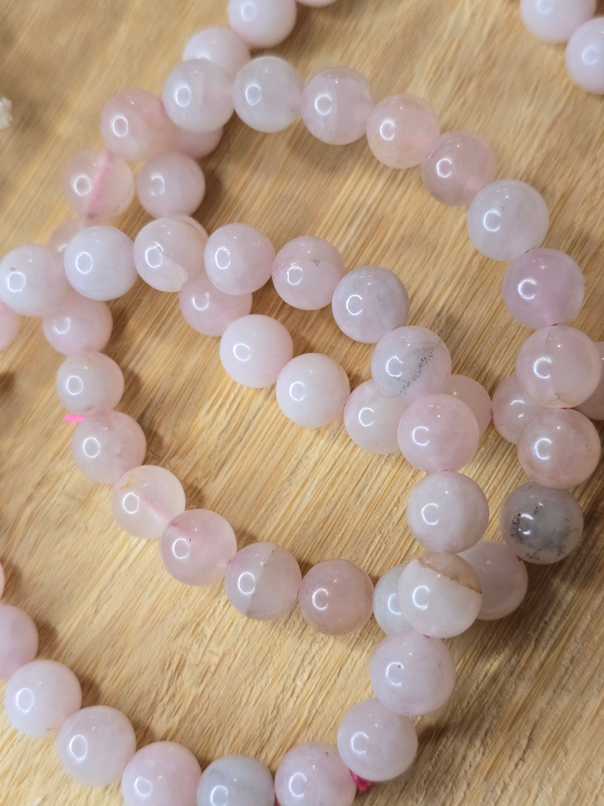 Detta armband bär hjärtats mjukaste frekvens i en ovanlig och drömsk ton av frostigt lavendelljus. Varje pärla skiftar mellan rosa, dimlila och mjölkig transparens, och de naturliga mineralinklusionerna ger armbandet en rå, jordande magi som gör det både romantiskt och kraftfullt på samma gång.