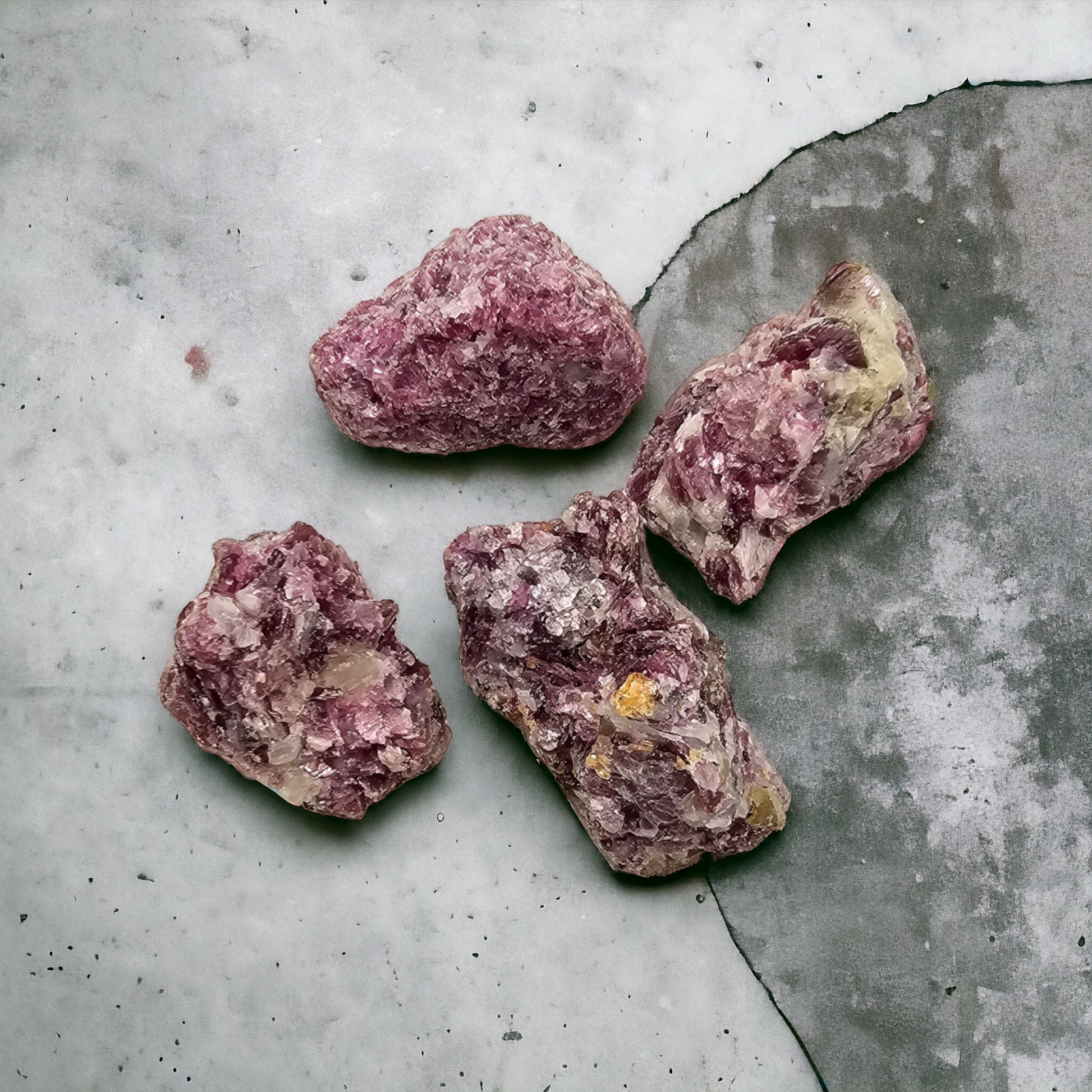Råa bitar Lepidolit i hög kvalitet! Plockas slumpvis.