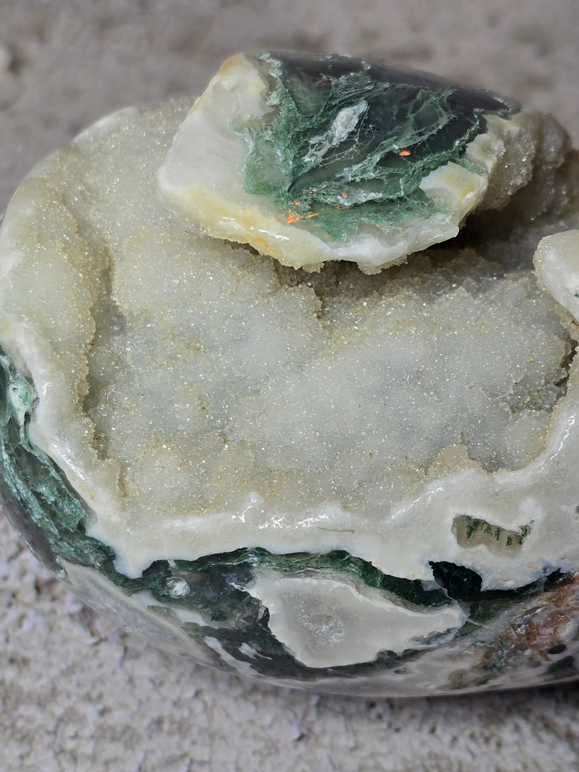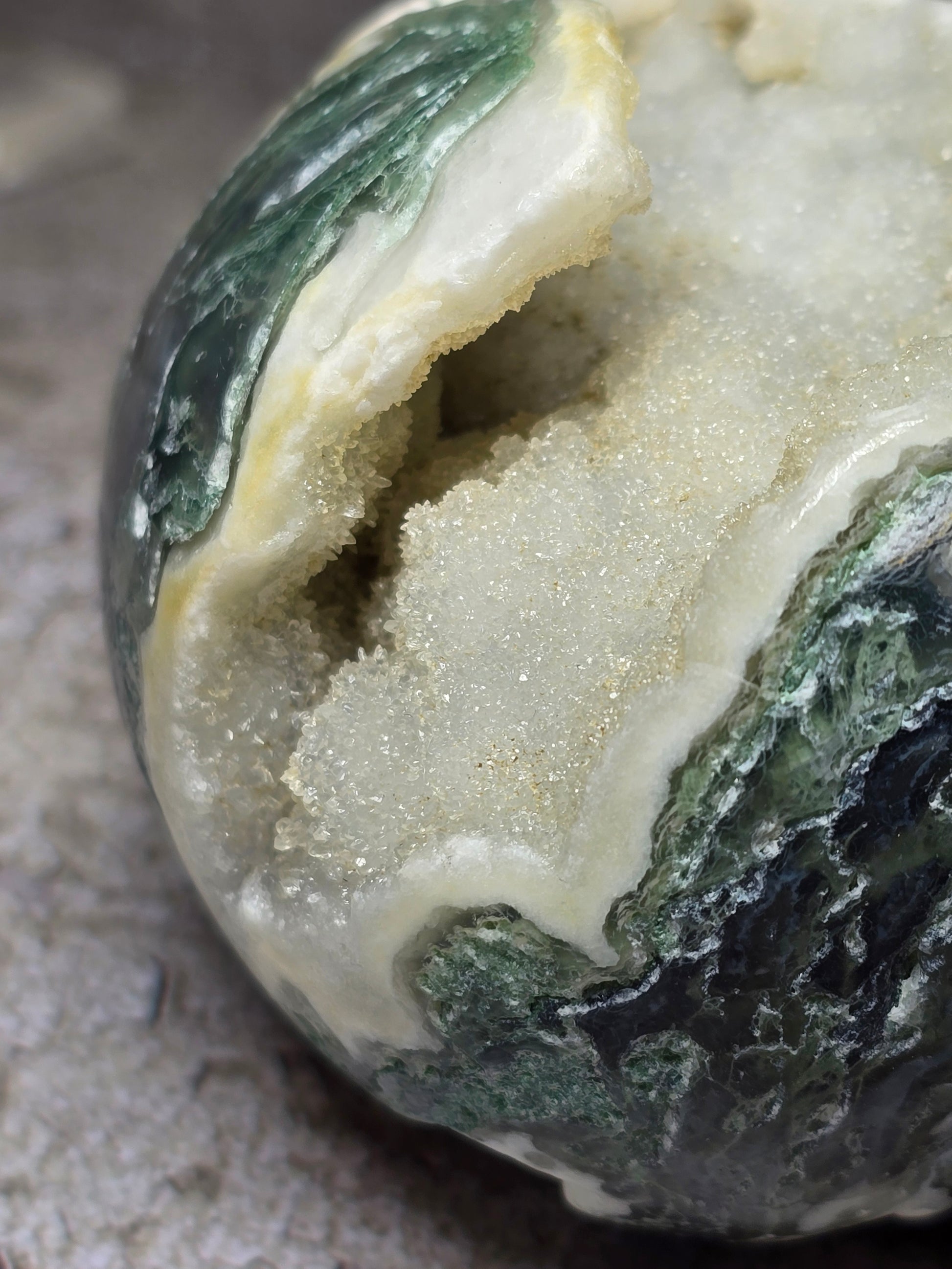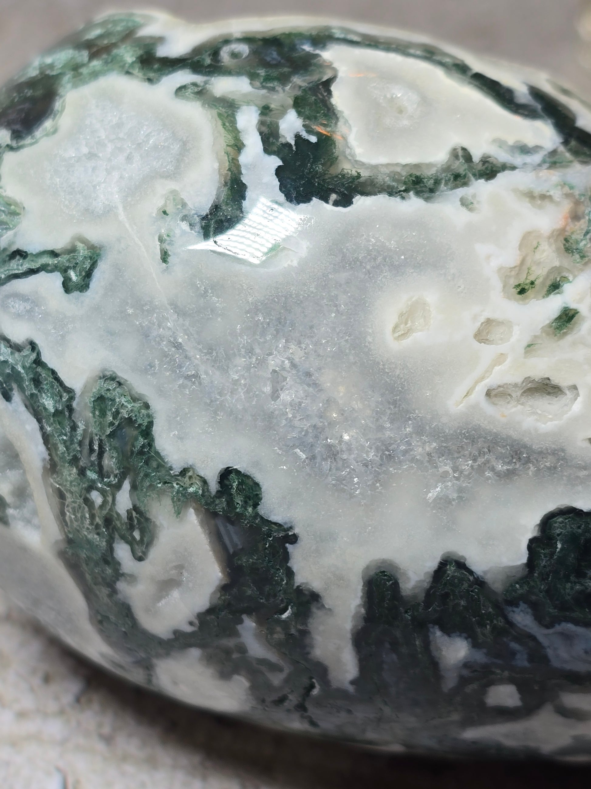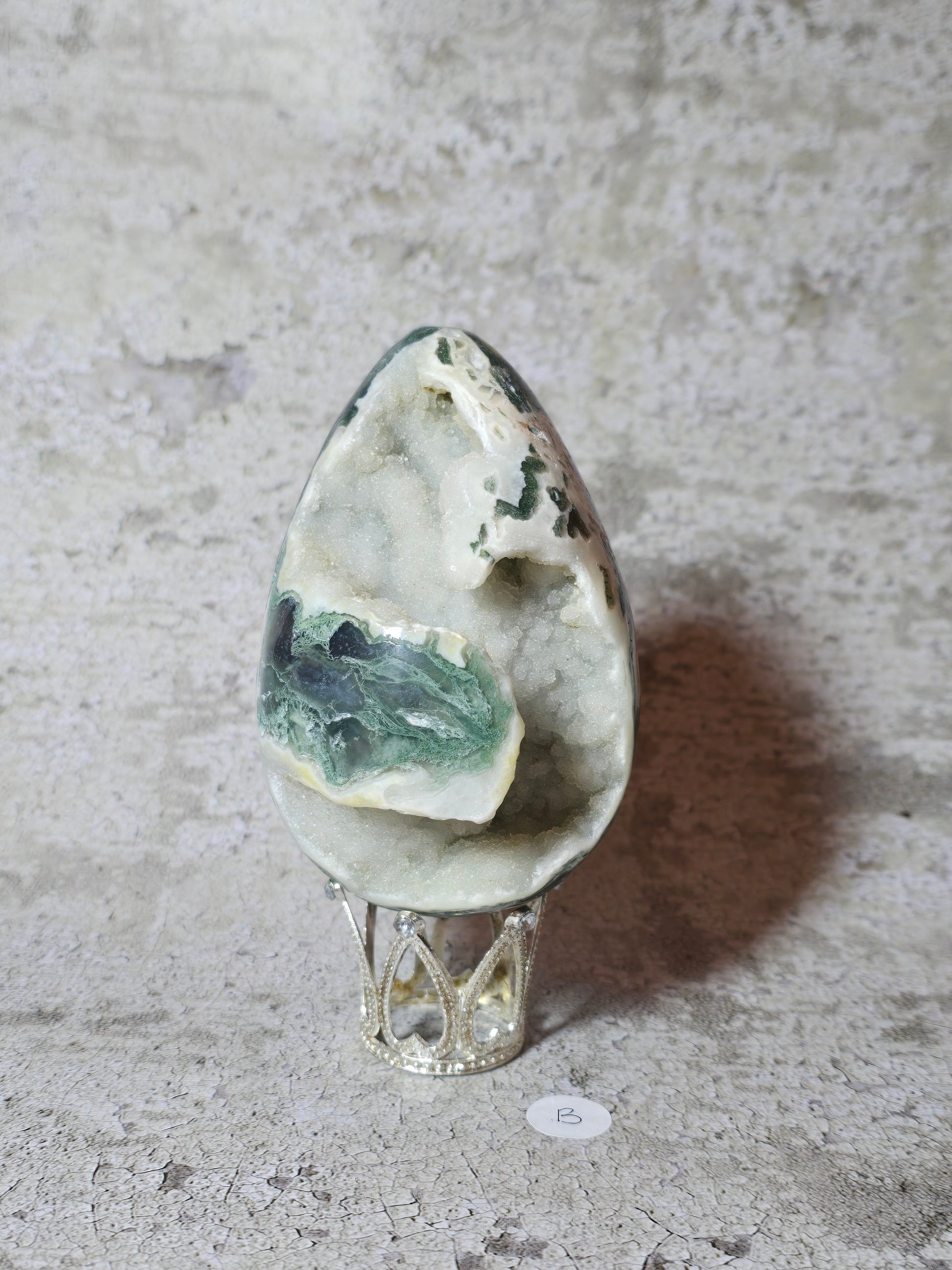 Mossagat förknippas med stabilitet, jordning och naturlig utveckling. I äggform symboliserar den potential och nya början – en kraftfull kombination för dig som vill skapa trygg grund och samtidigt ge utrymme för tillväxt.
