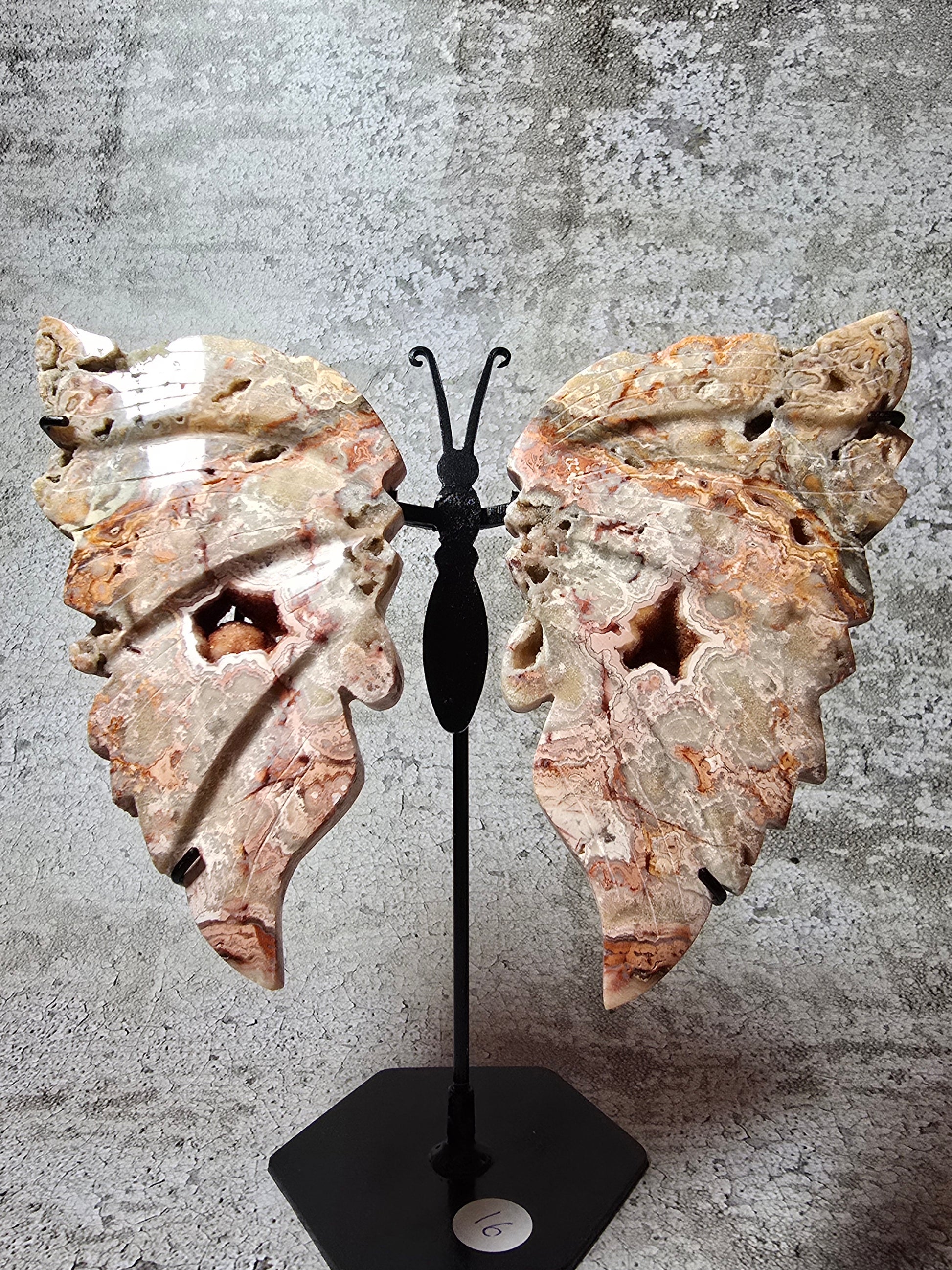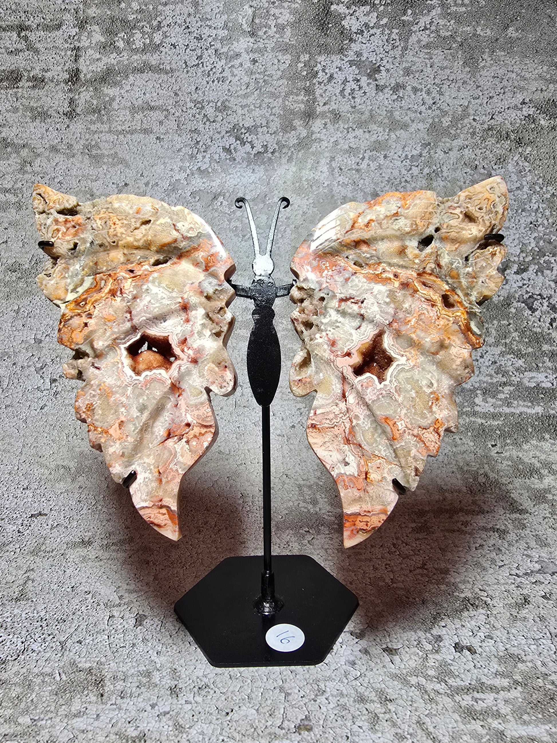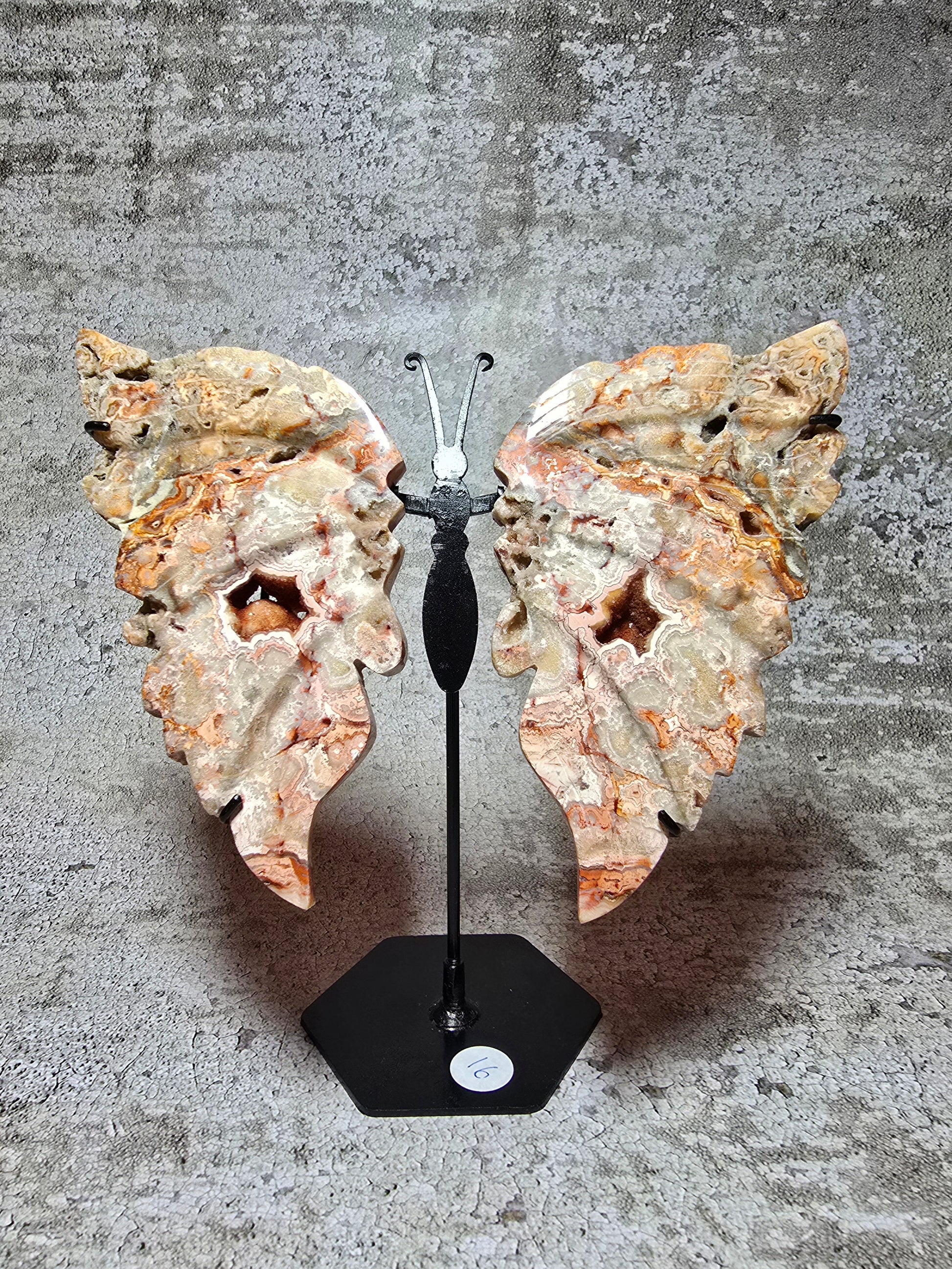 Rosa Crazy Lace Agat – Handkarvad Transformationsfjäril #16