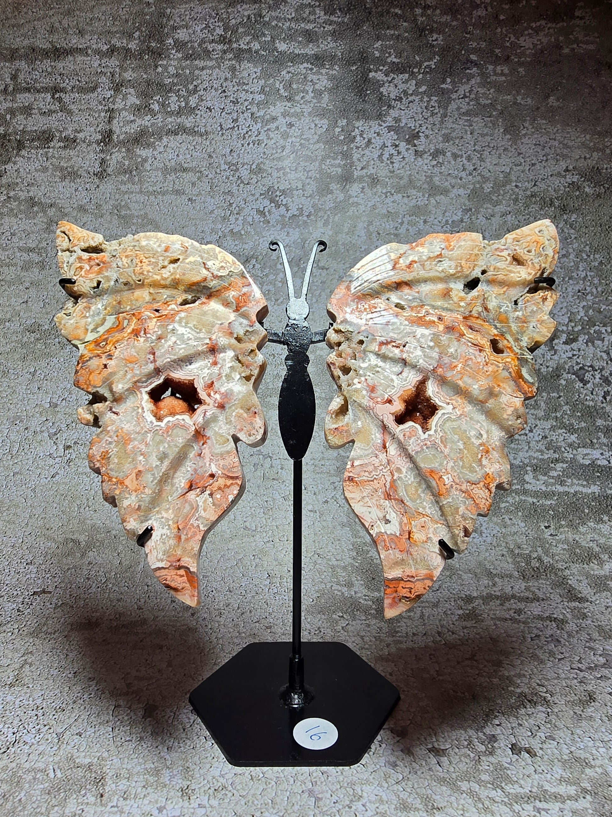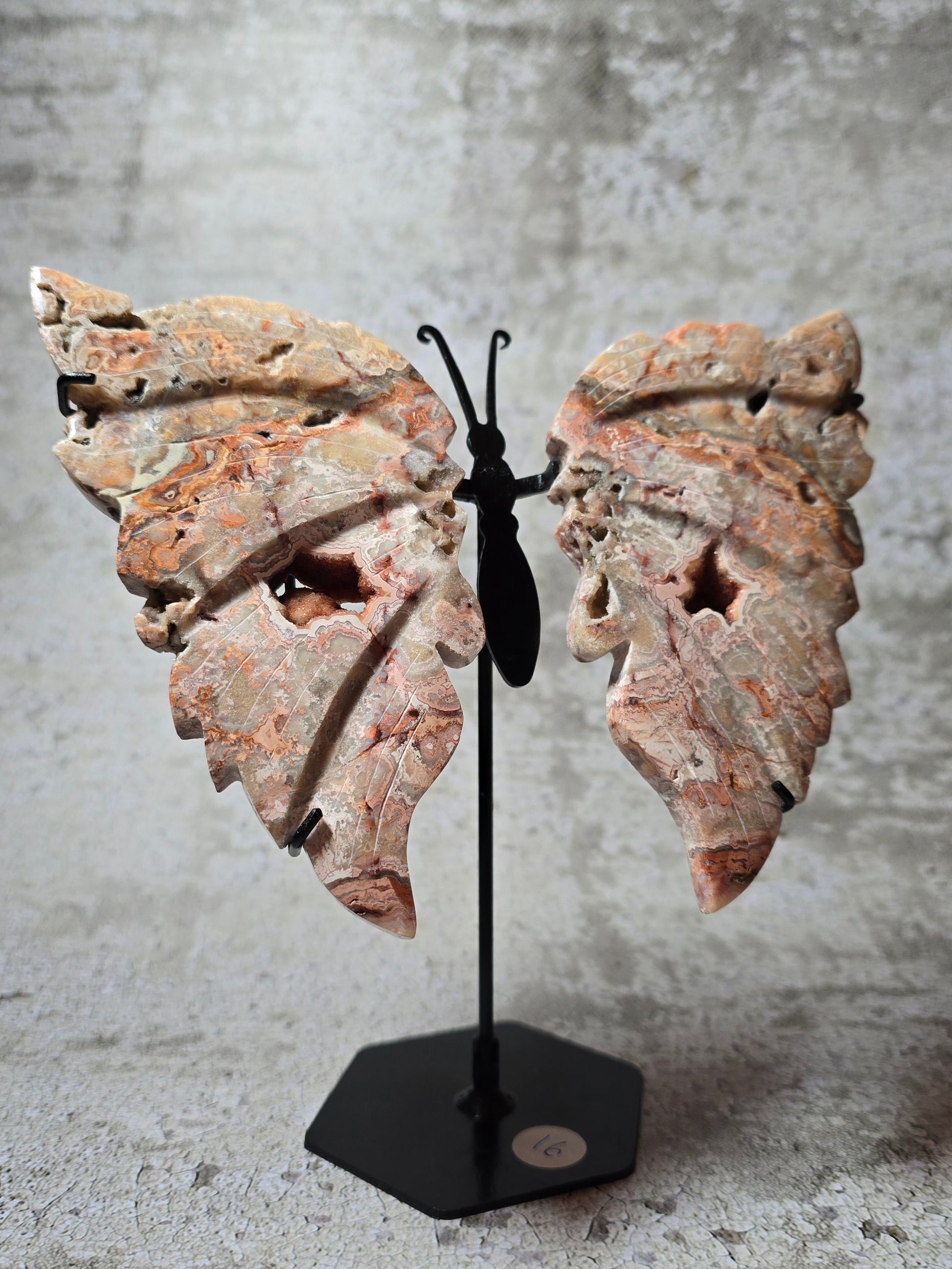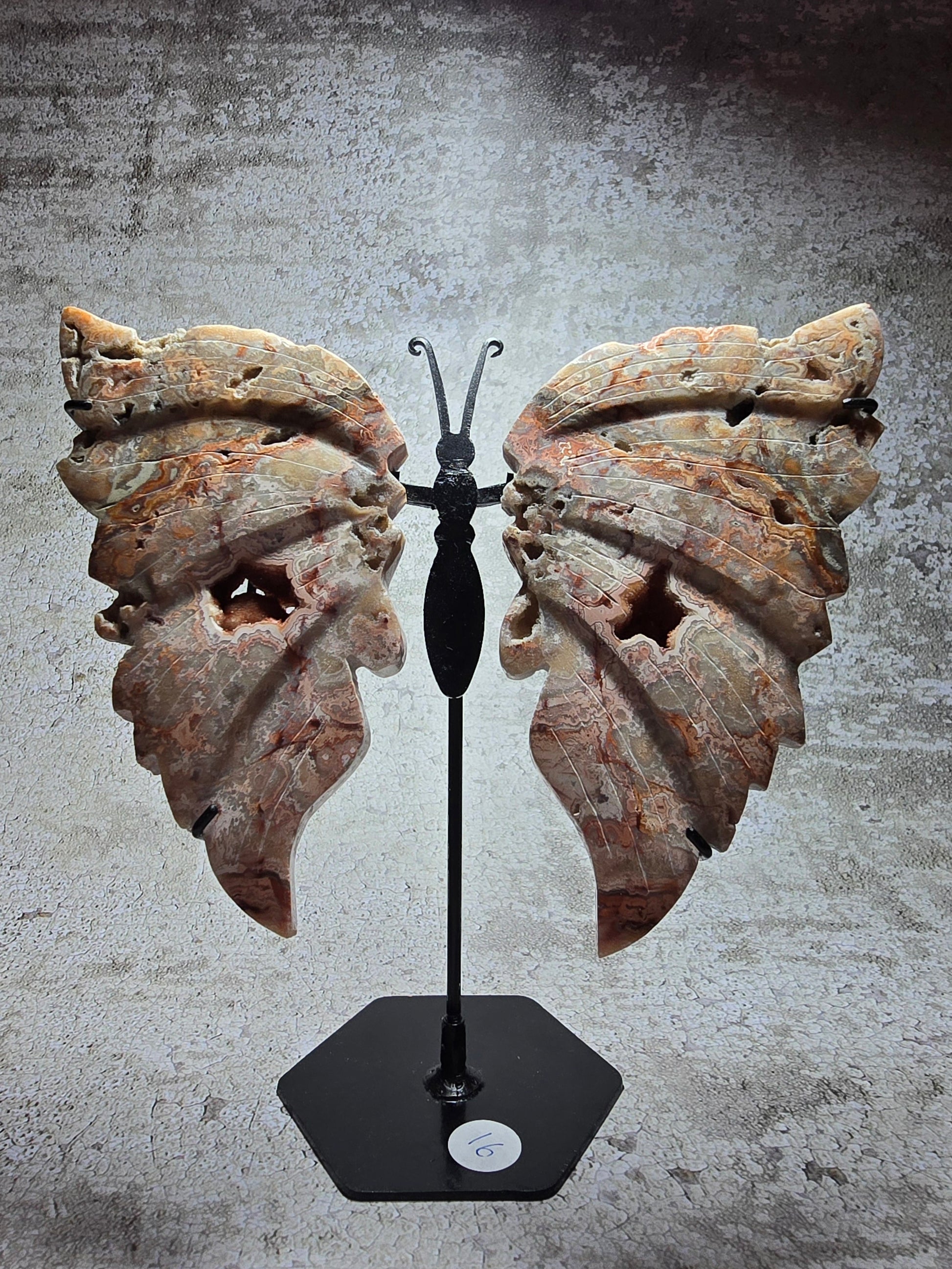 Rosa Crazy Lace Agat – Handkarvad Transformationsfjäril #16