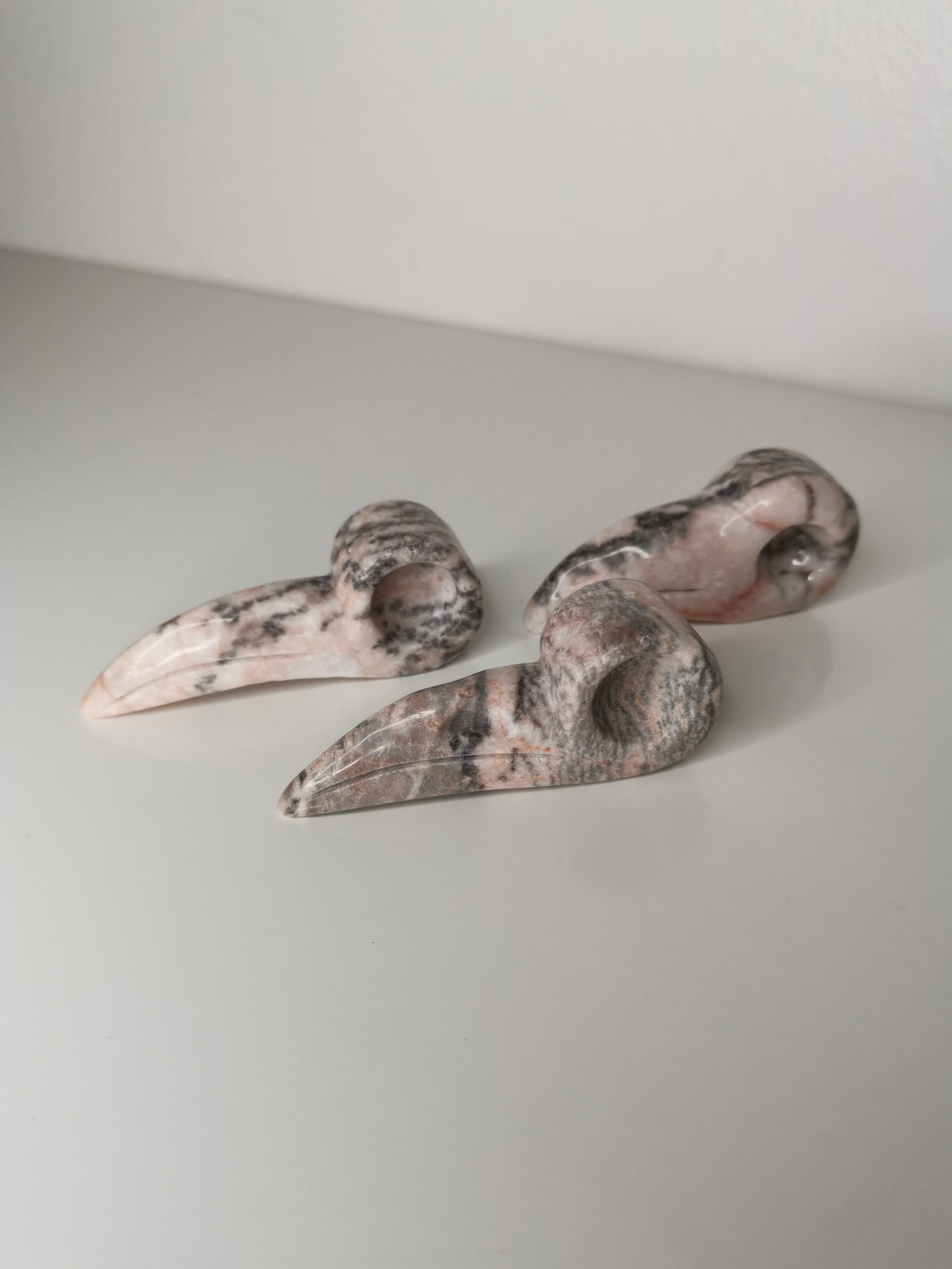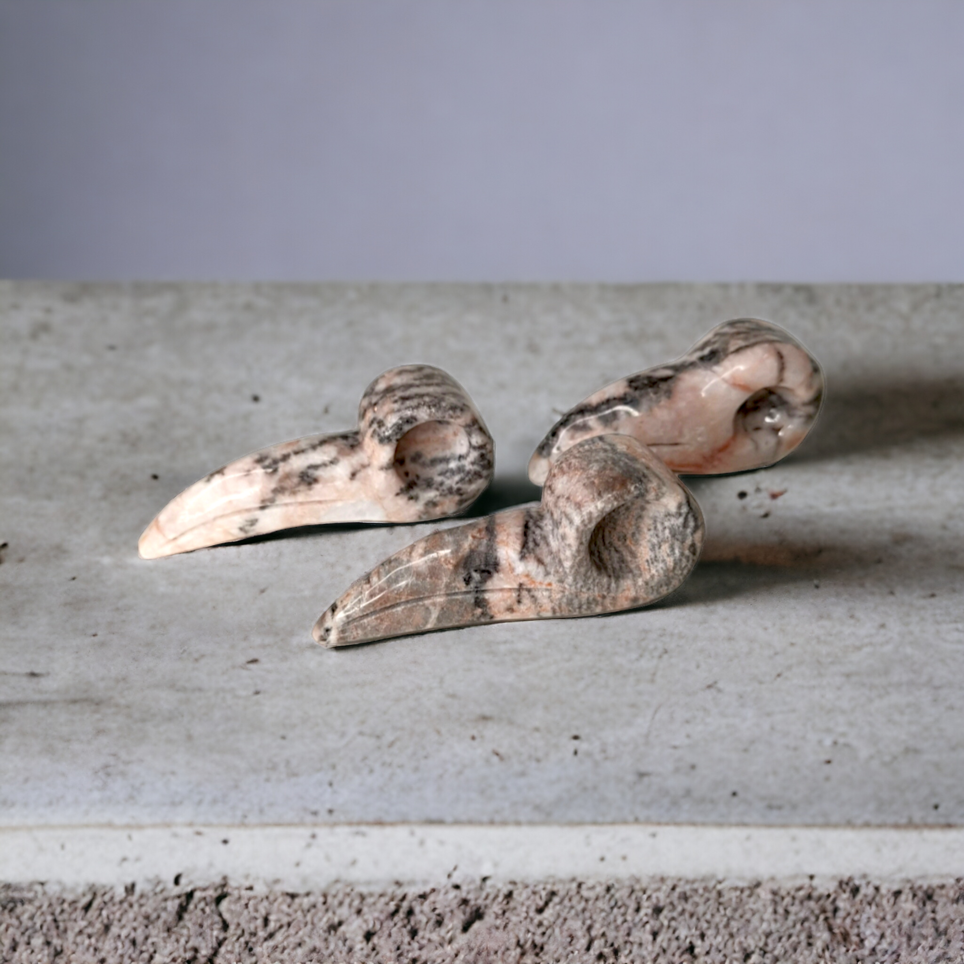Fågelskalle i rosa zebra jaspis. Jättefina och "tjejiga".