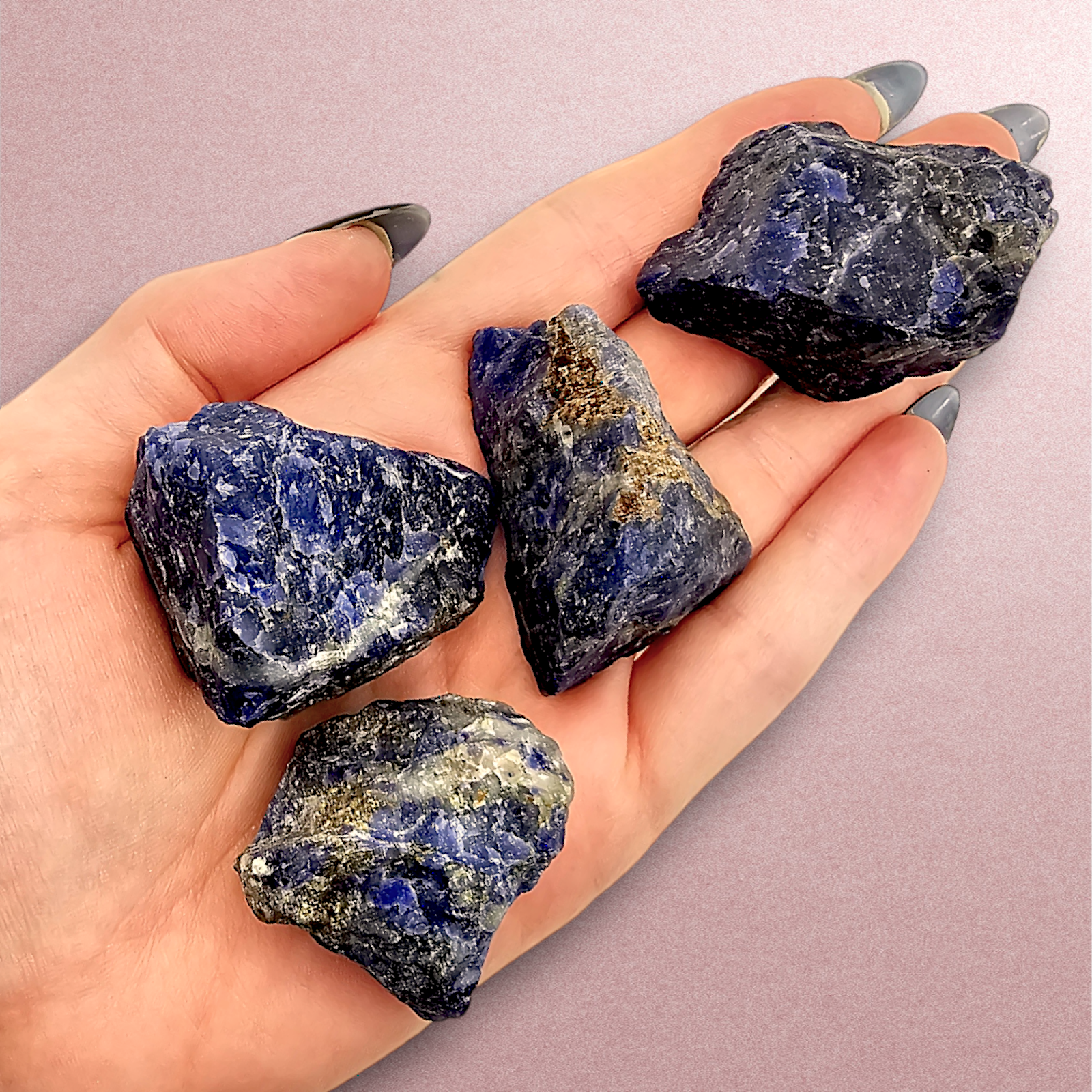 Fina råa bitar av Sodalit. Dessa bitar är uv-reaktiva! Något för samlaren.