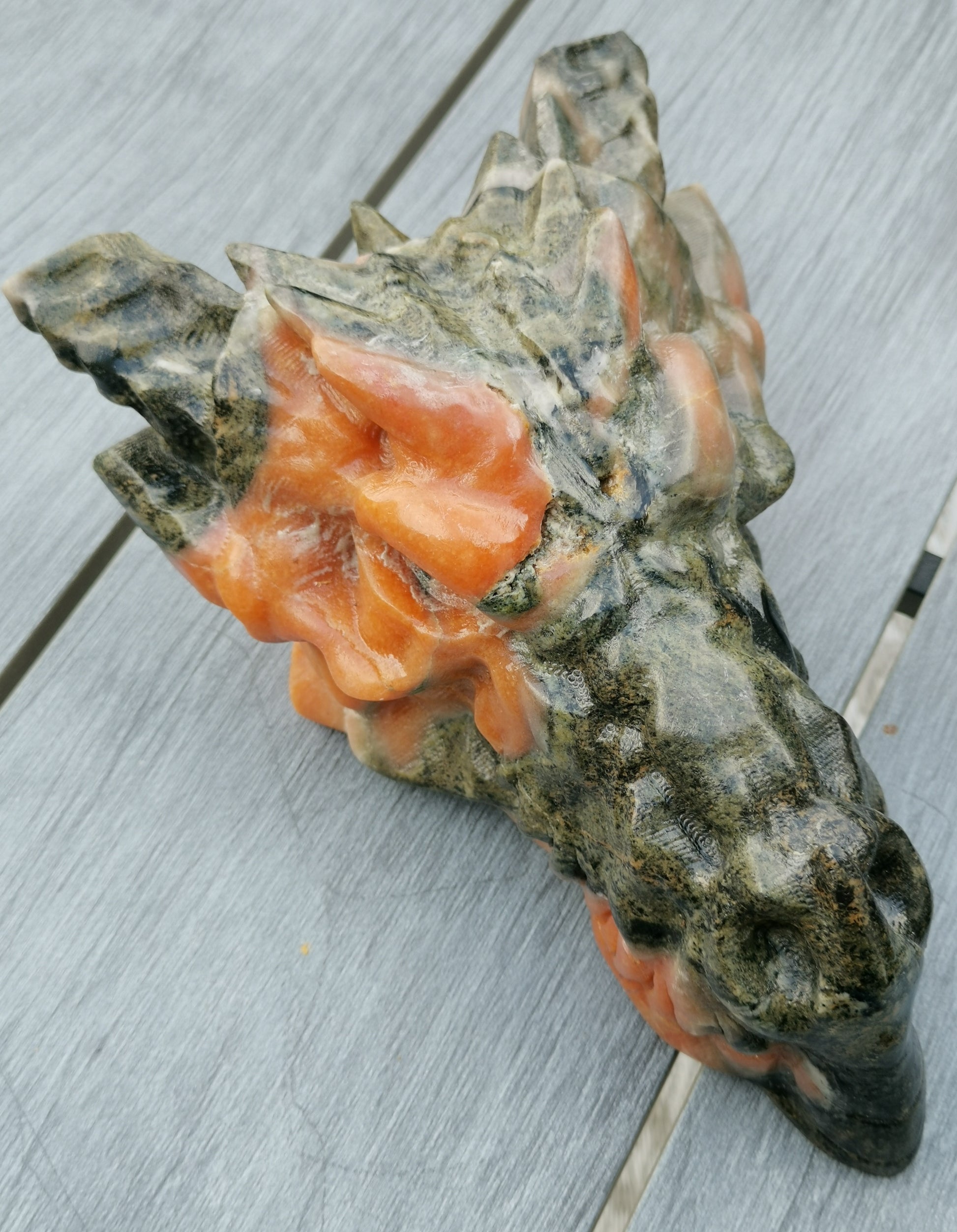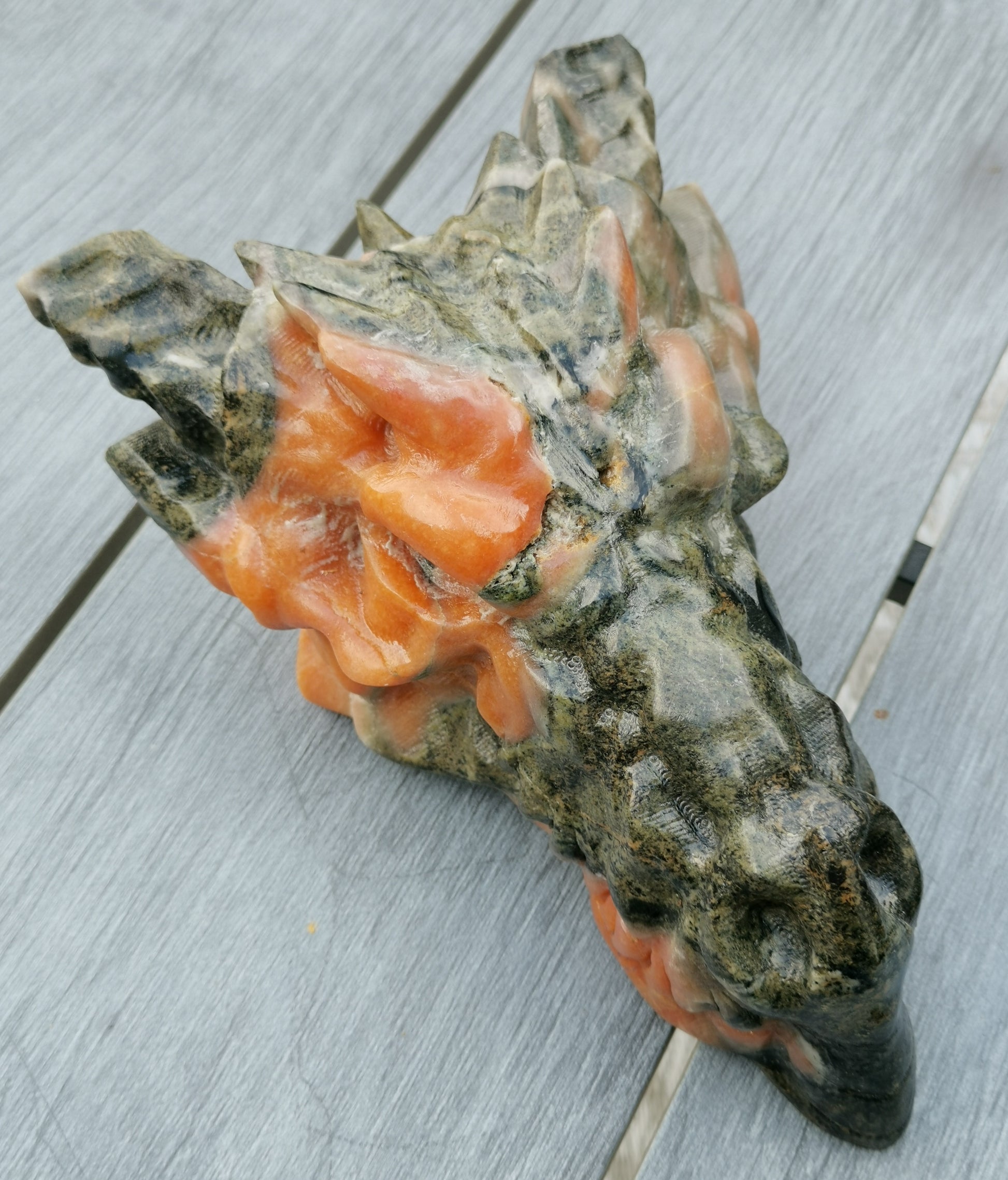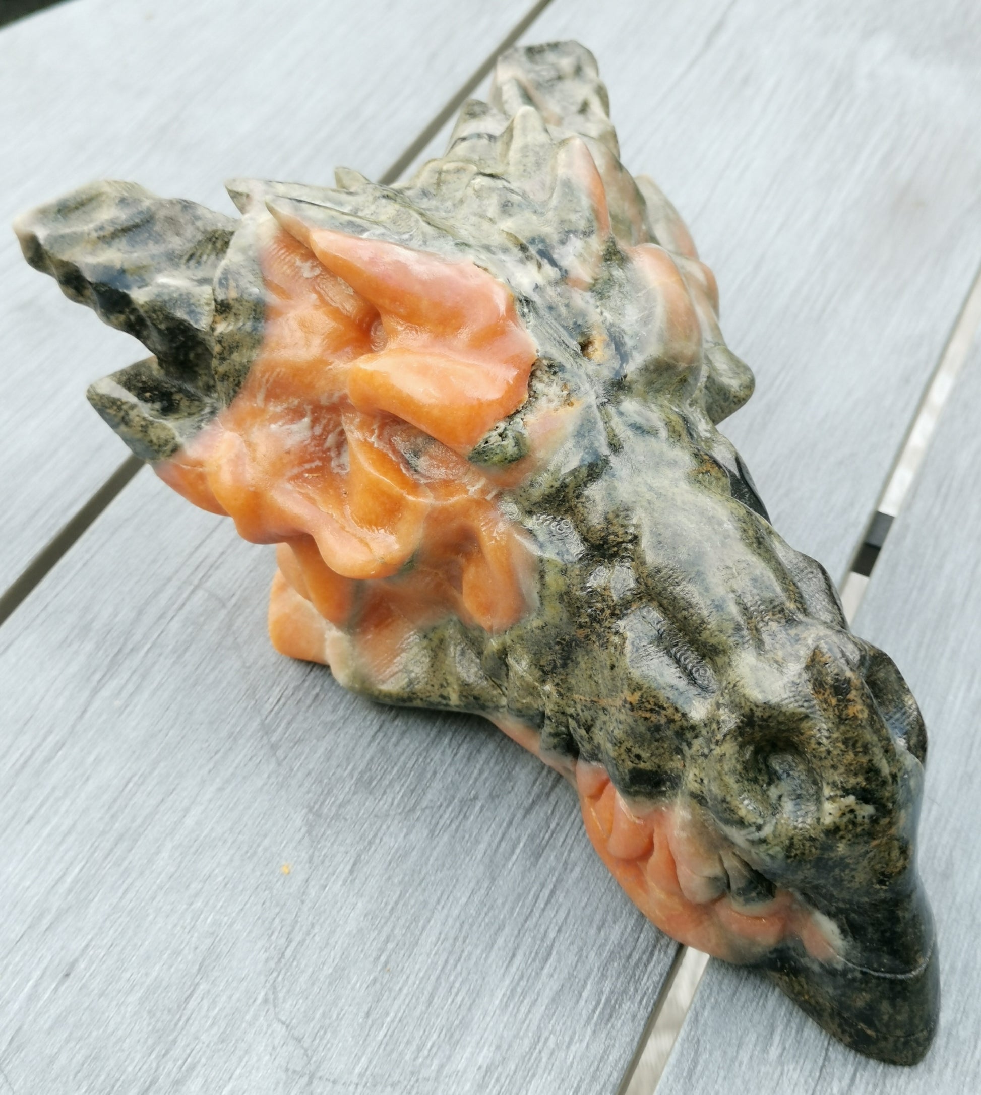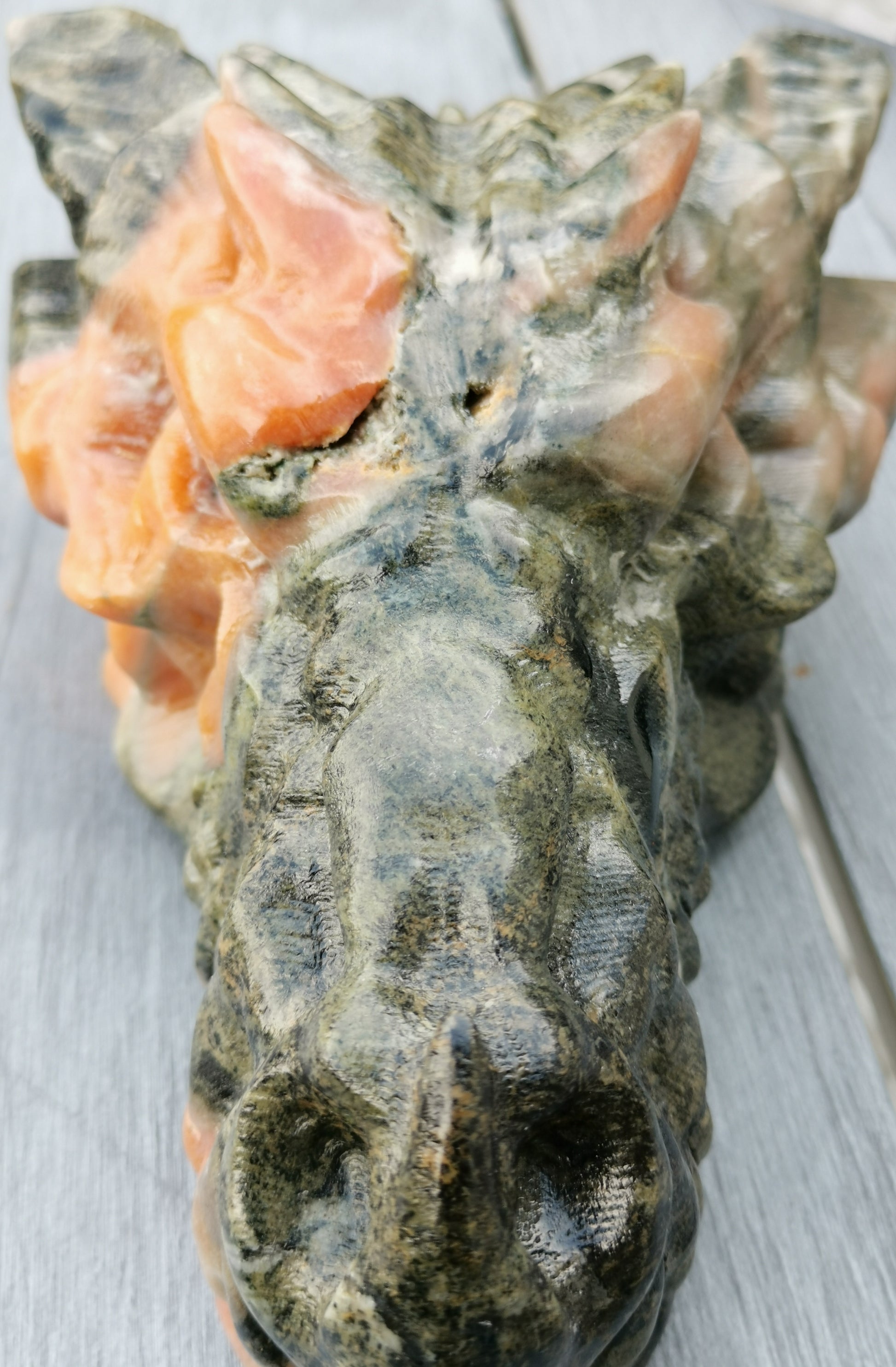 XXL Drakskalle i Grön & Orange kalcit