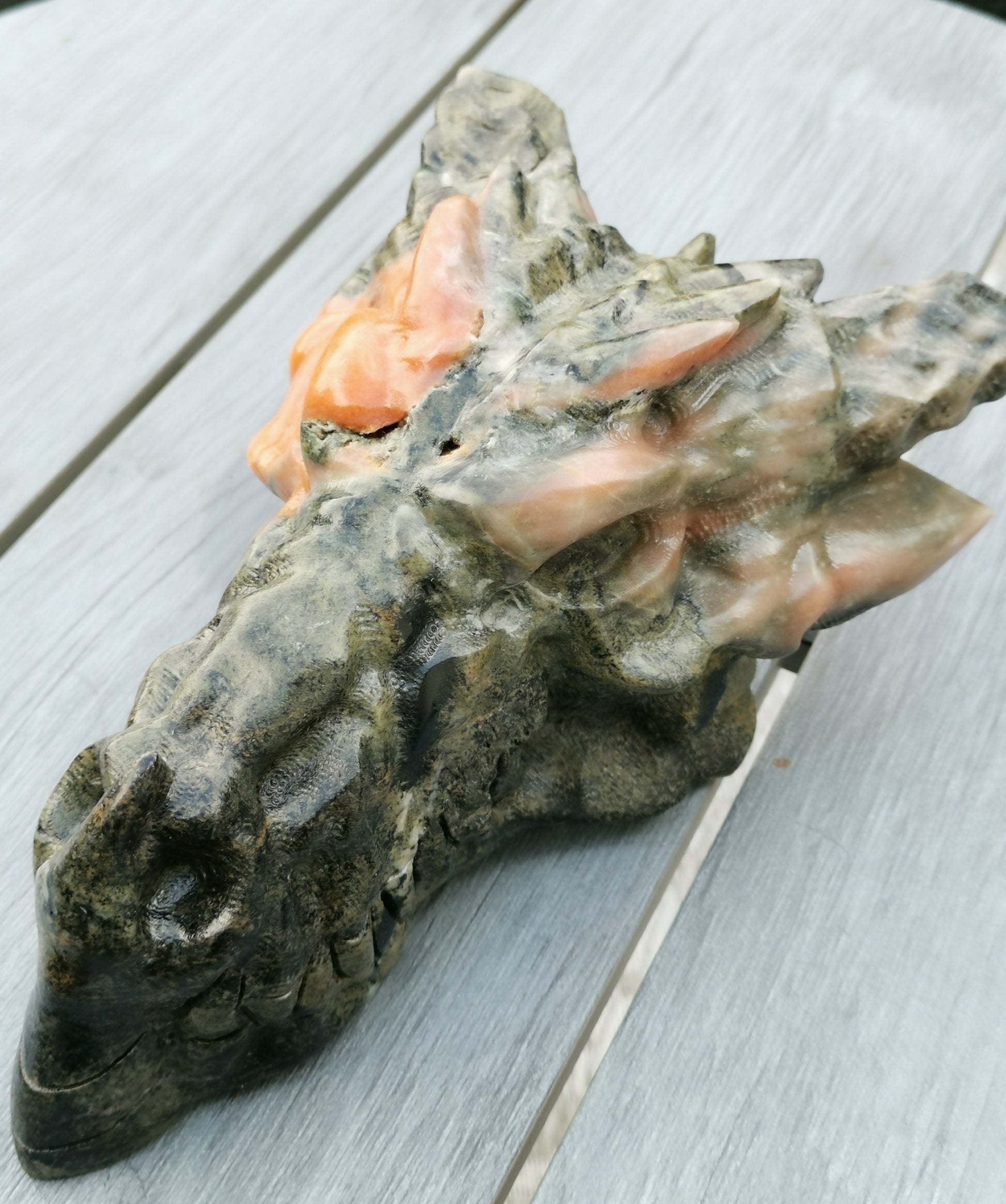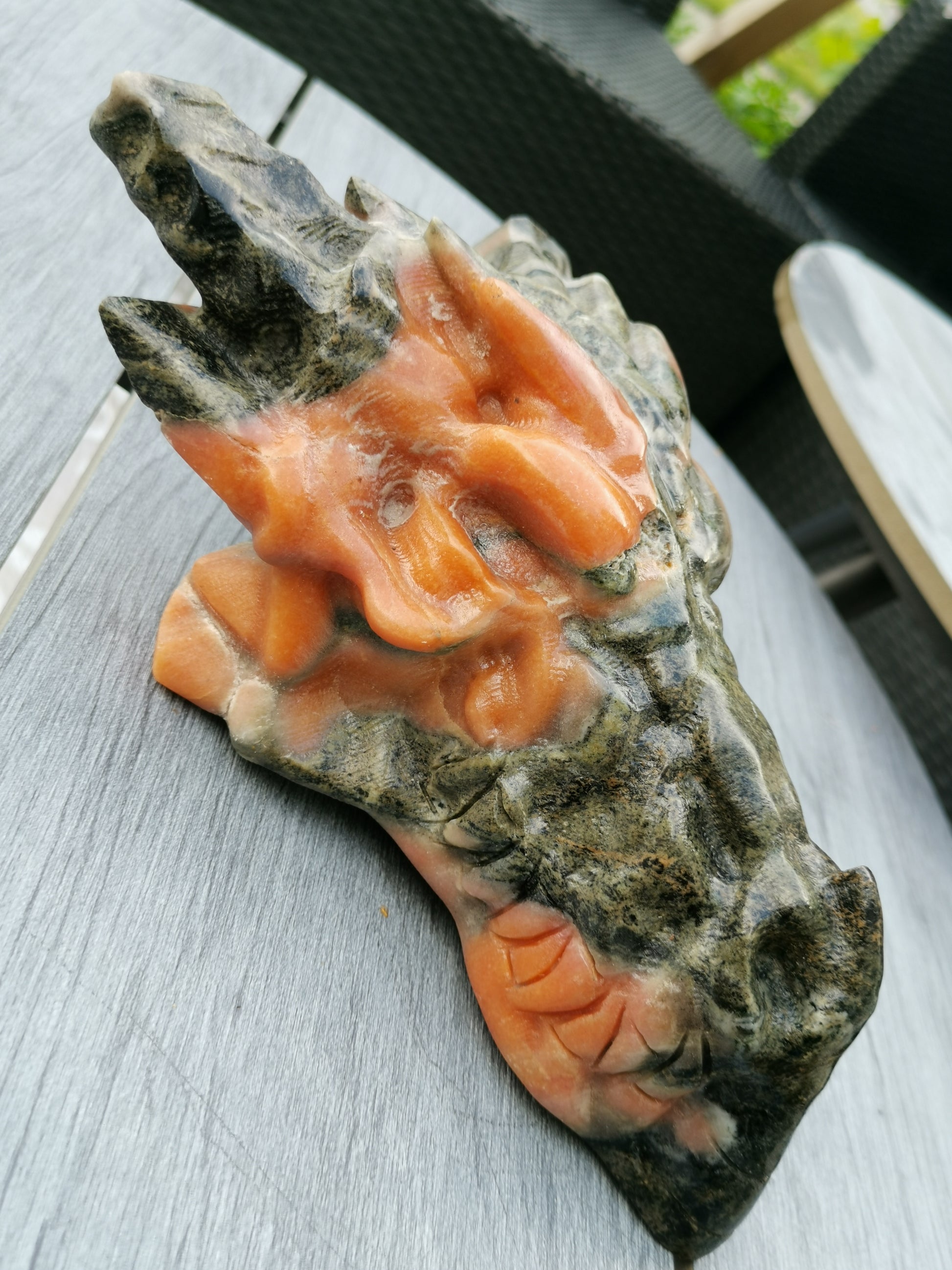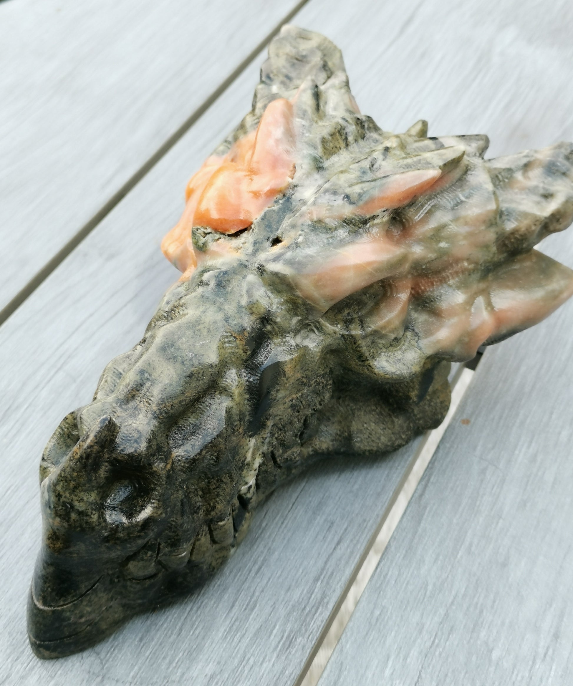 XXL Drakskalle i Grön & Orange kalcit
