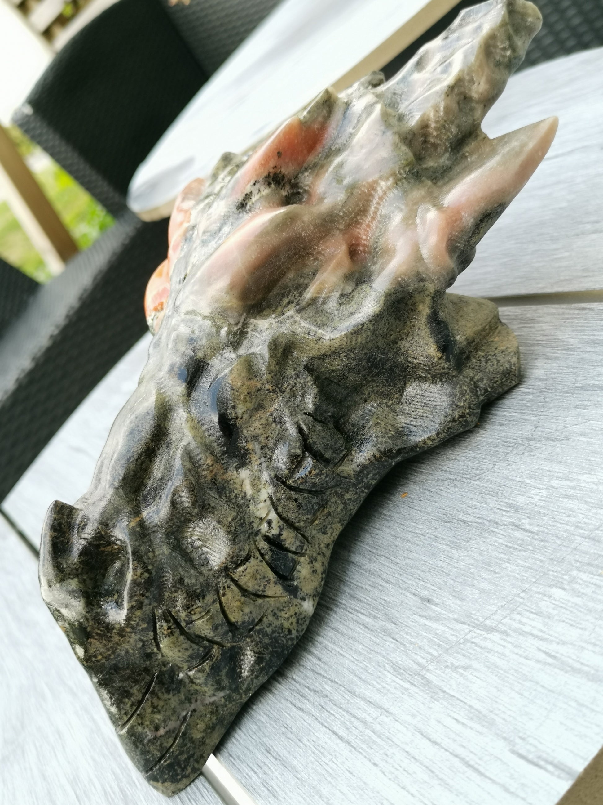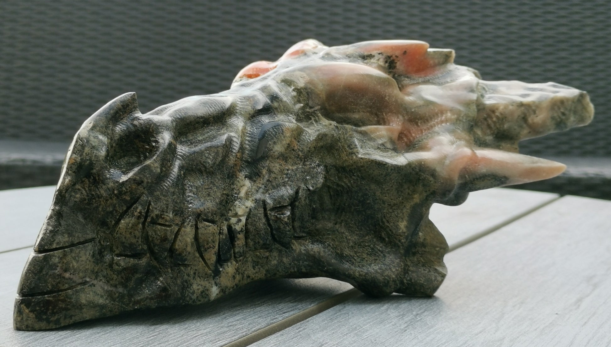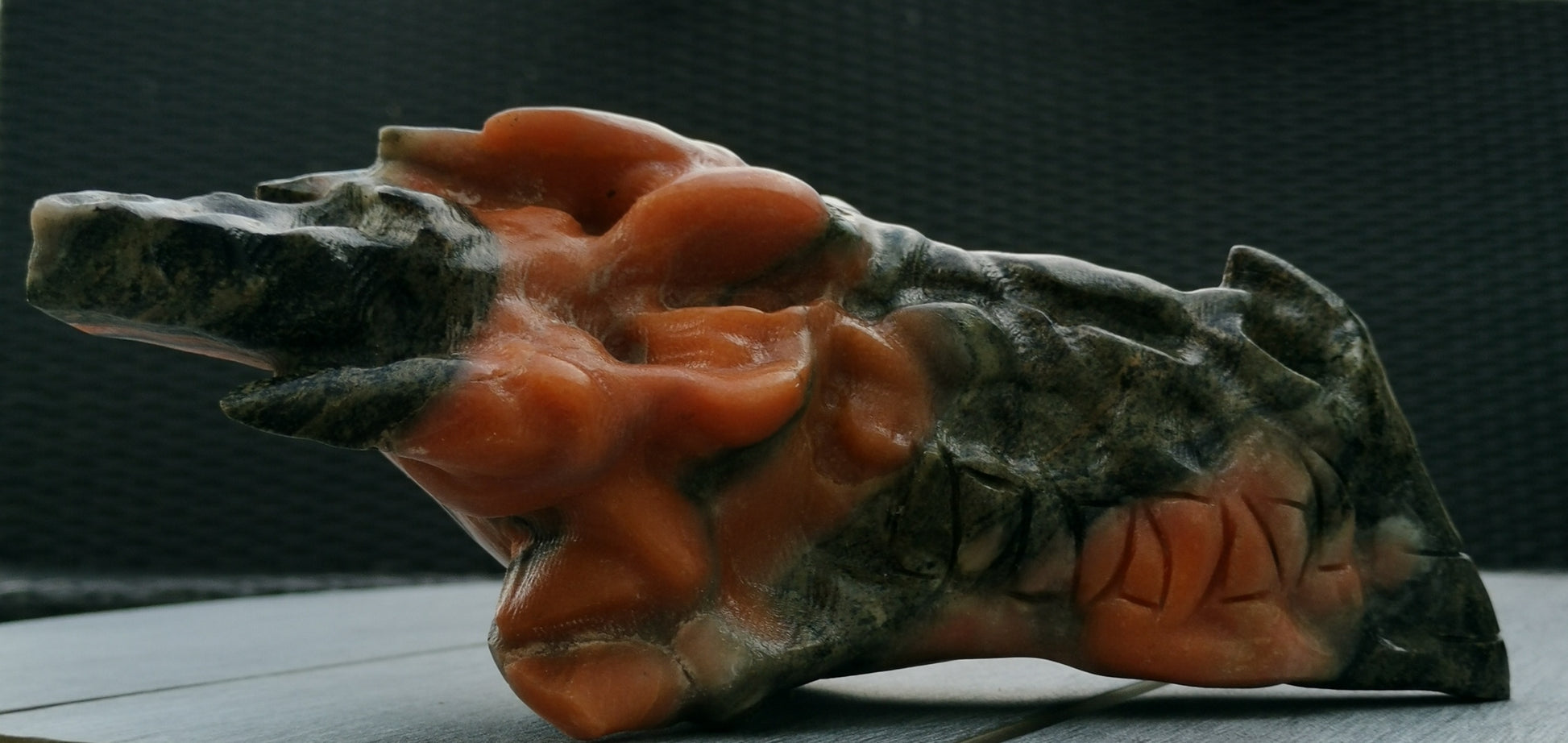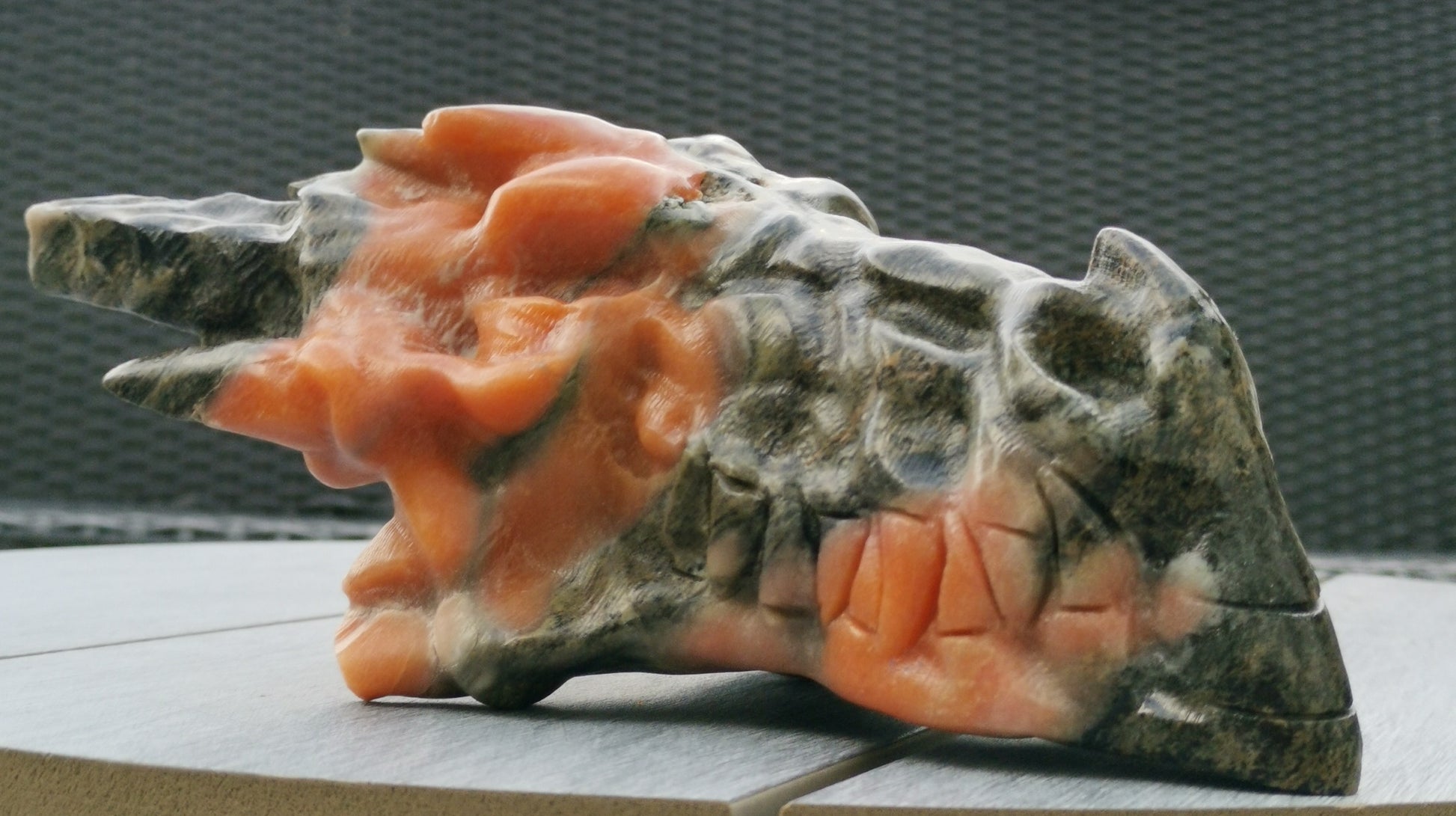 XXL Drakskalle i Grön & Orange kalcit