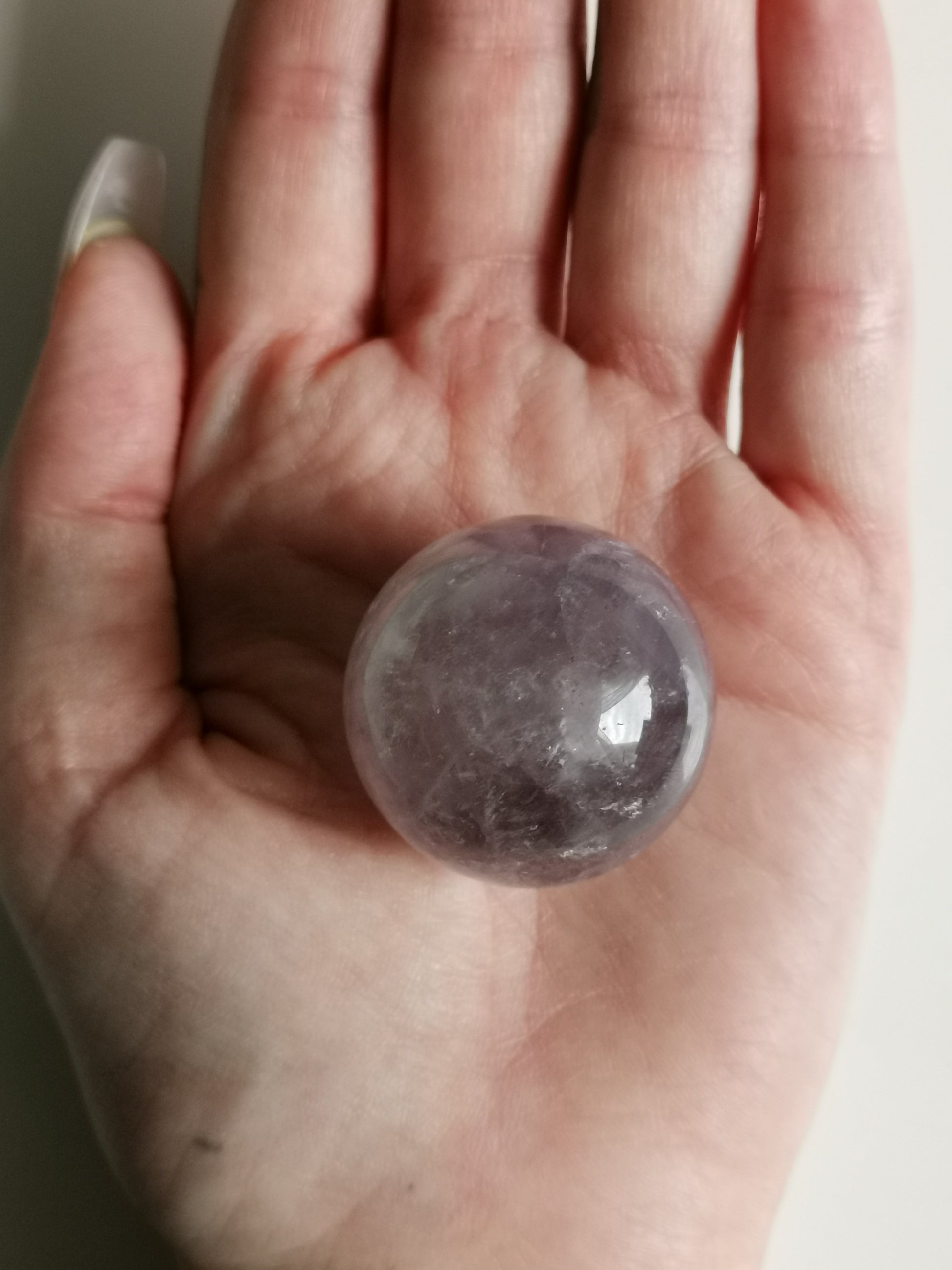 Superfint klot i Ametist & rökkvarts. Reducerat pris pga grumligheten.