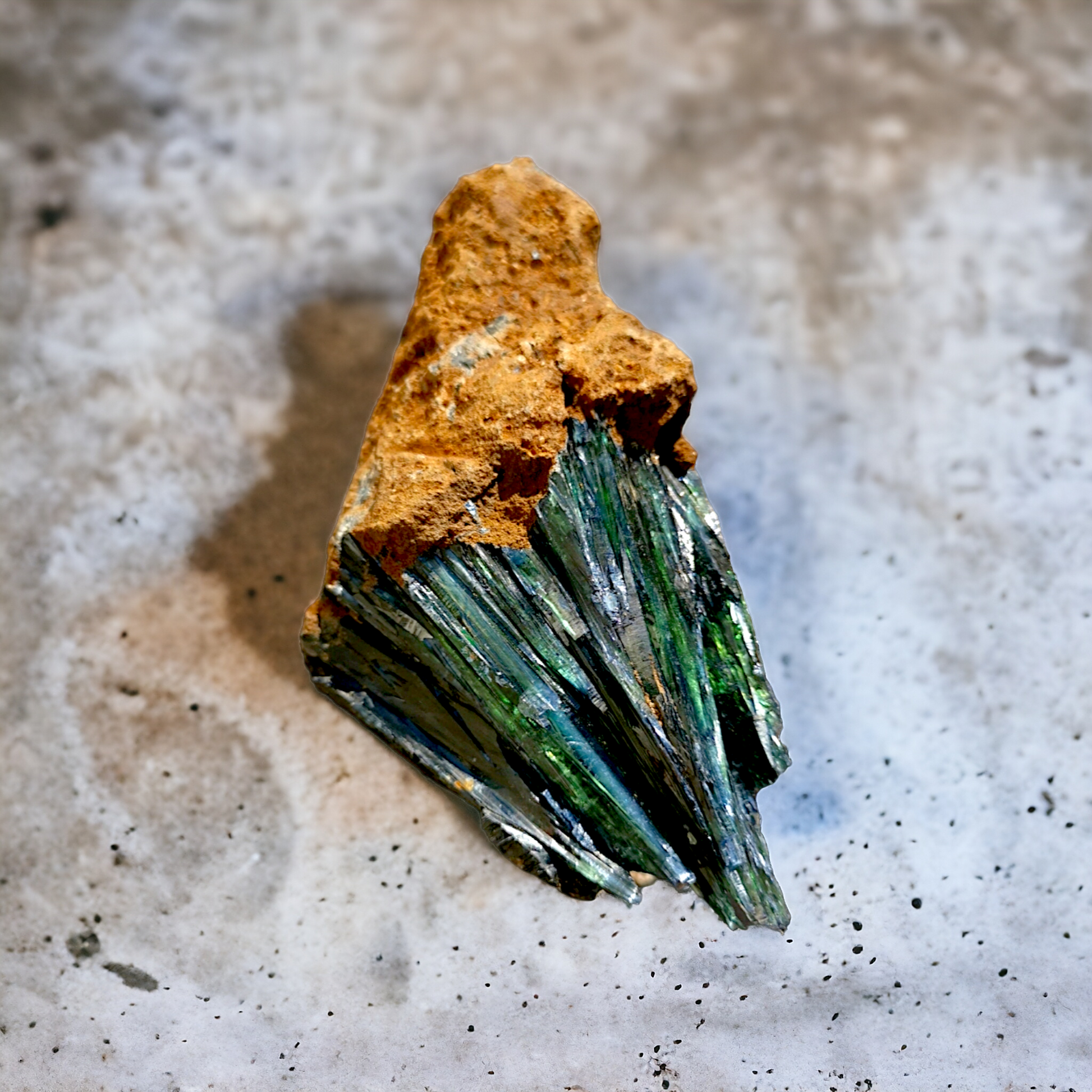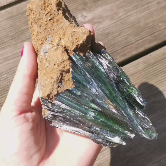 Stor härlig bit i Vivianit, något för den som samlar. Otroligt vacker med fina lager och spetsar. Skiftar i både grönt & blått.
